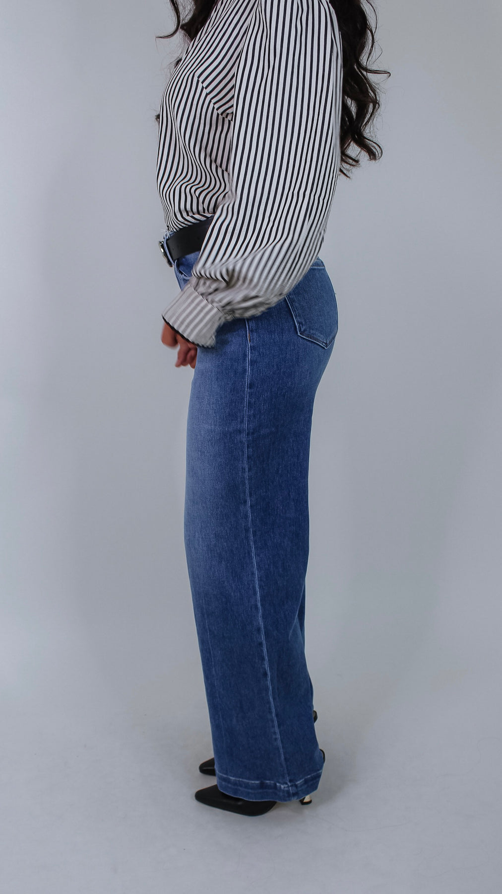 Step into effortless style with Lottery Jeans, your new go-to high-waisted wide-leg denim. The flattering high-rise silhouette defines your waist, while the roomy wide legs keep you comfy and cool all day long. Perfect for mixing and matching, these jeans bring a playful twist to any outfit — whether you’re dressing up or keeping it casual.