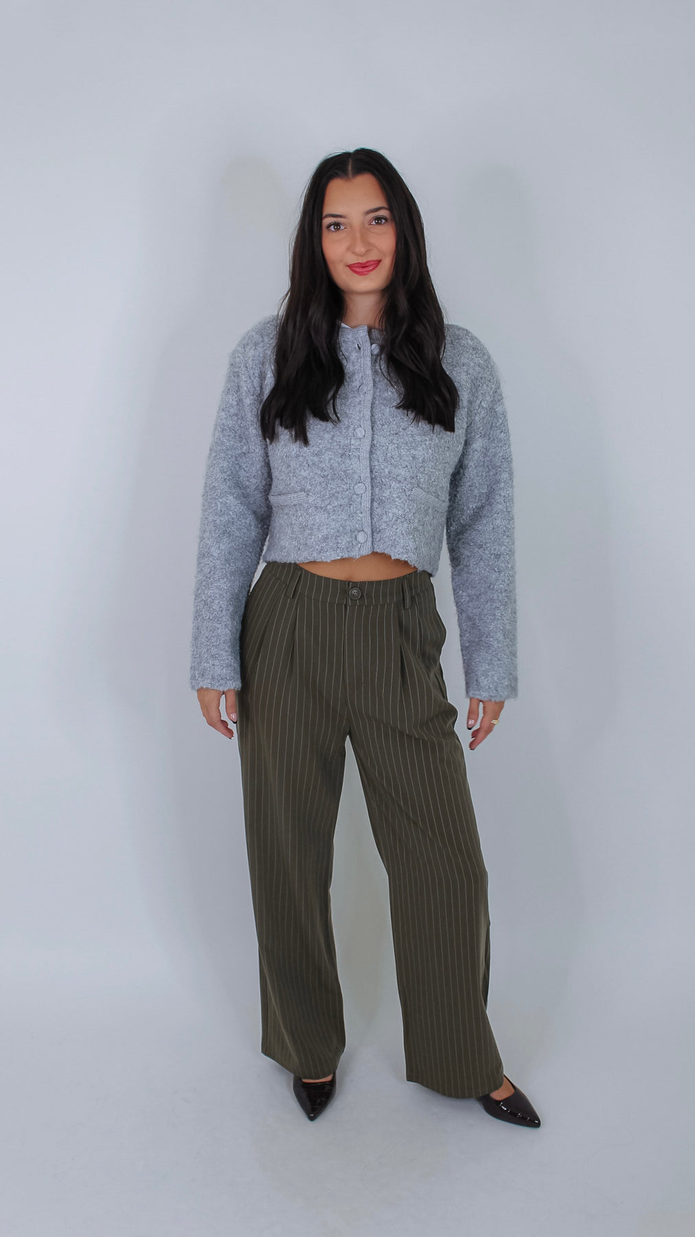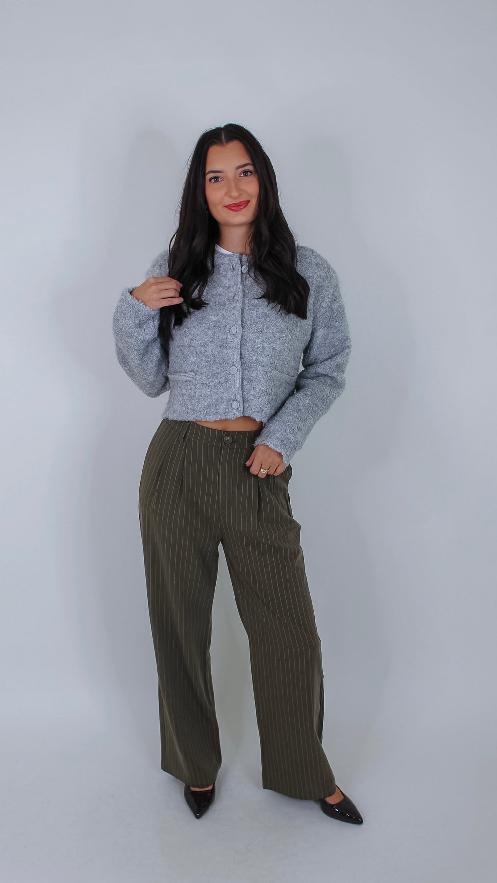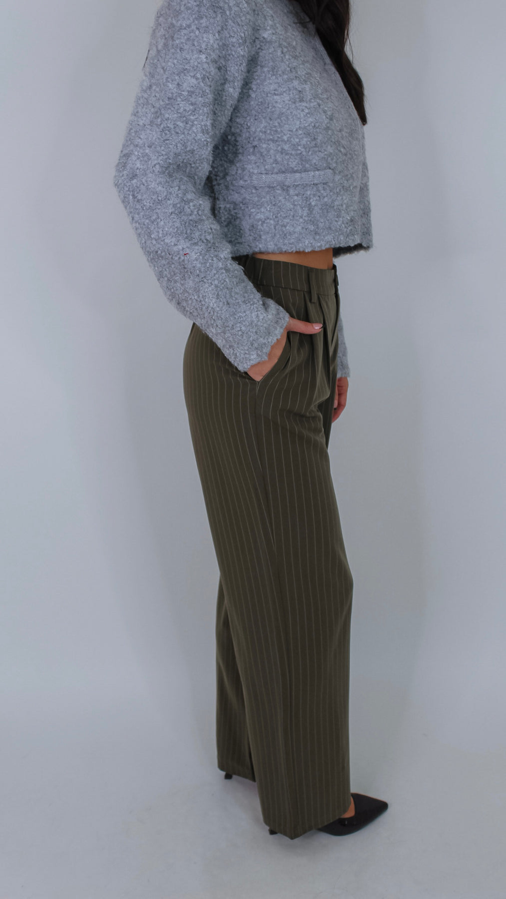 Step out in style with the Tyler Pin Stripe Pants in olive! These playful pants feature a subtle pinstripe pattern that adds a dash of flair to your outfit. The olive green hue brings a fresh twist to classic tailoring, perfect for mixing and matching. Comfortable and chic, they’re ready to elevate your look from casual days to dressier nights with ease.