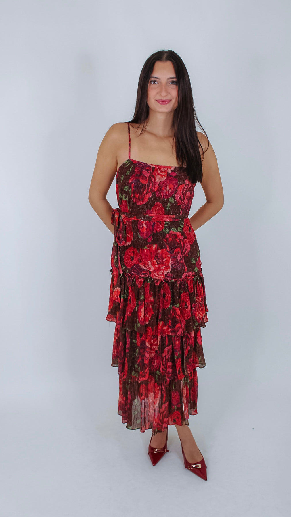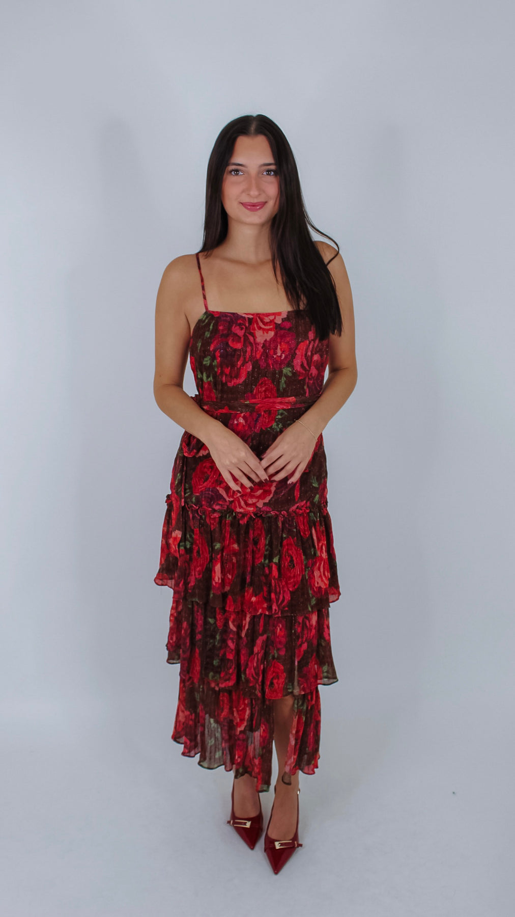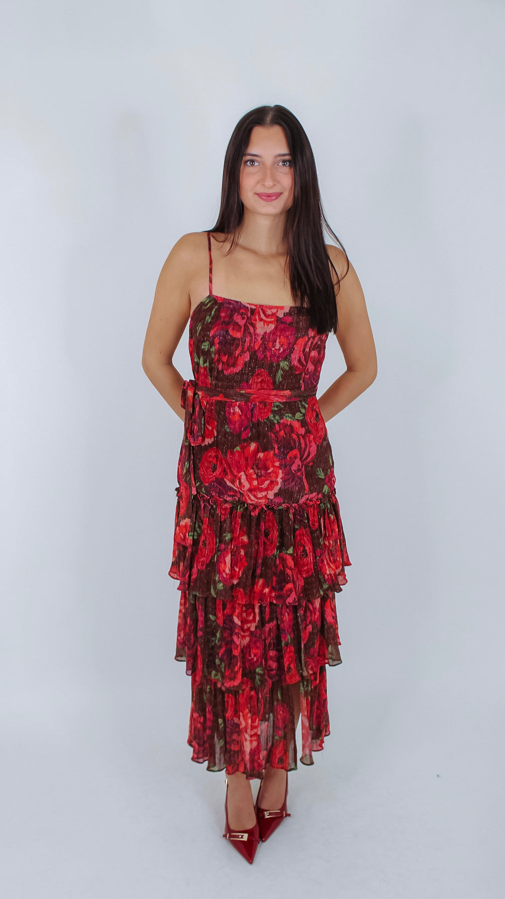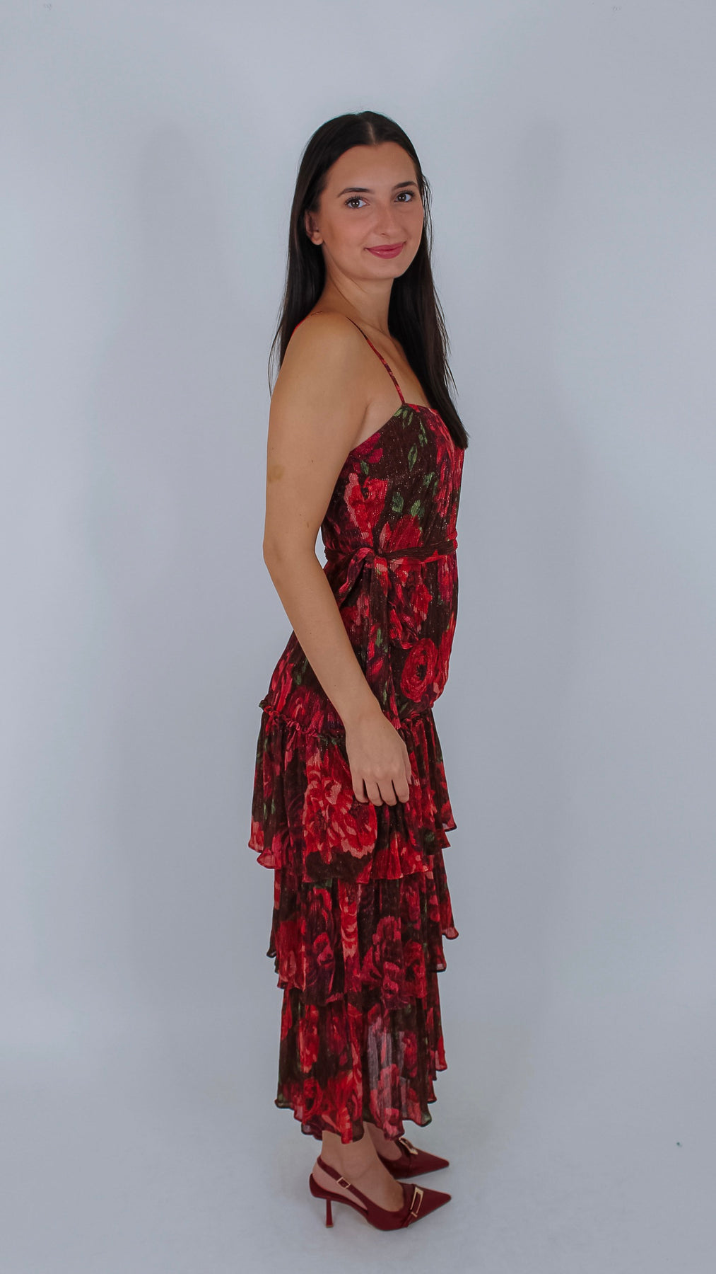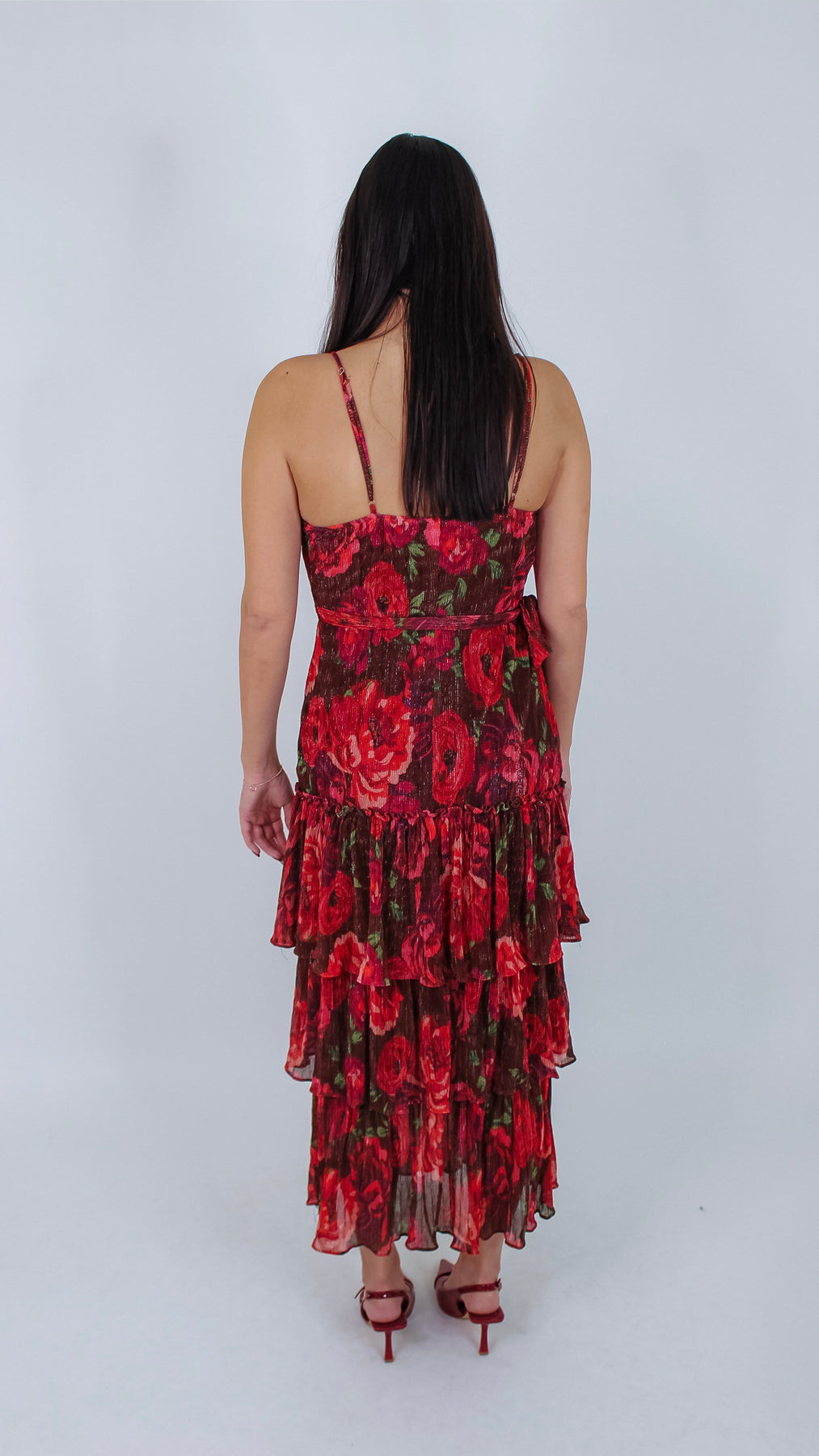 Step out in style with the Josie Burgundy Floral Maxi Dress, featuring a charming ruffle detail that adds a flirty twist to your look. The rich burgundy hue combined with delicate floral patterns creates a playful, feminine vibe perfect for any occasion.