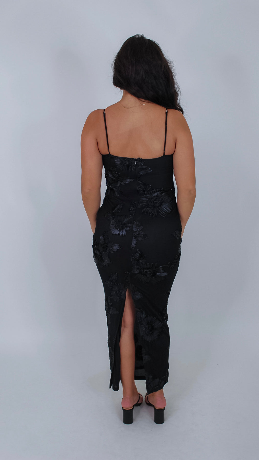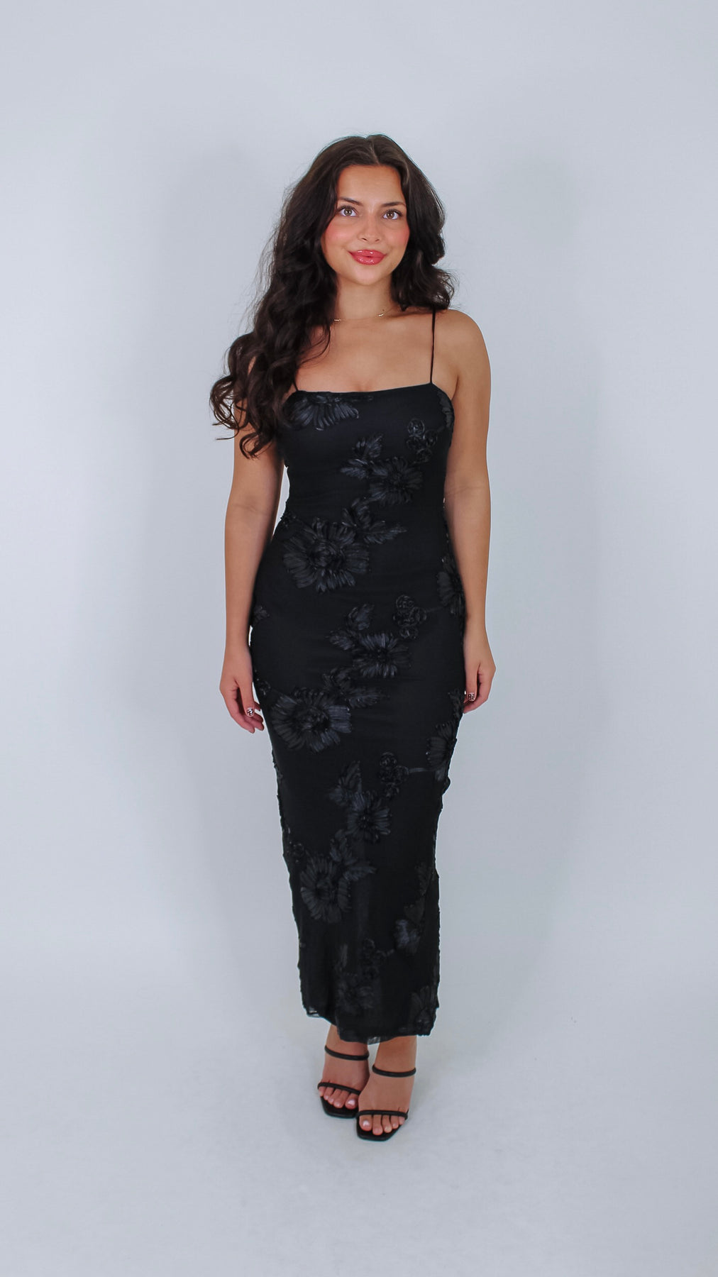 Slip into the Kala Black Dress and instantly turn heads. This 3D satin maxi features a sleek lower design that flows with every step, adding a touch of drama to your look. Perfect for evenings when you want to feel effortlessly glamorous and ready to dance all night.