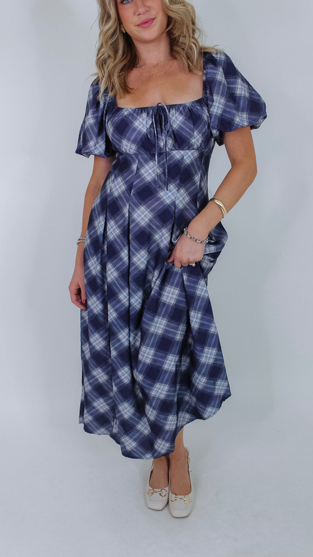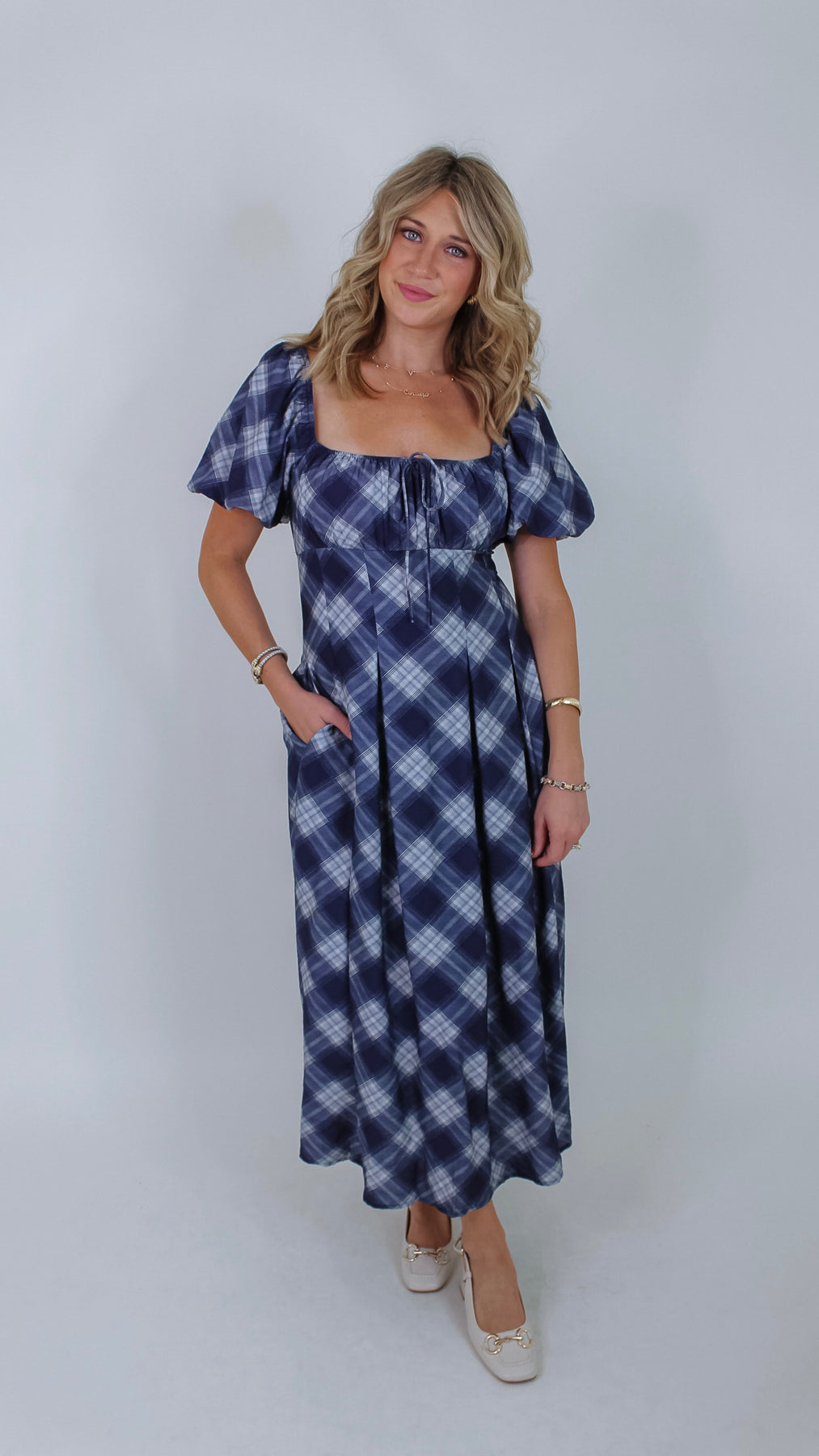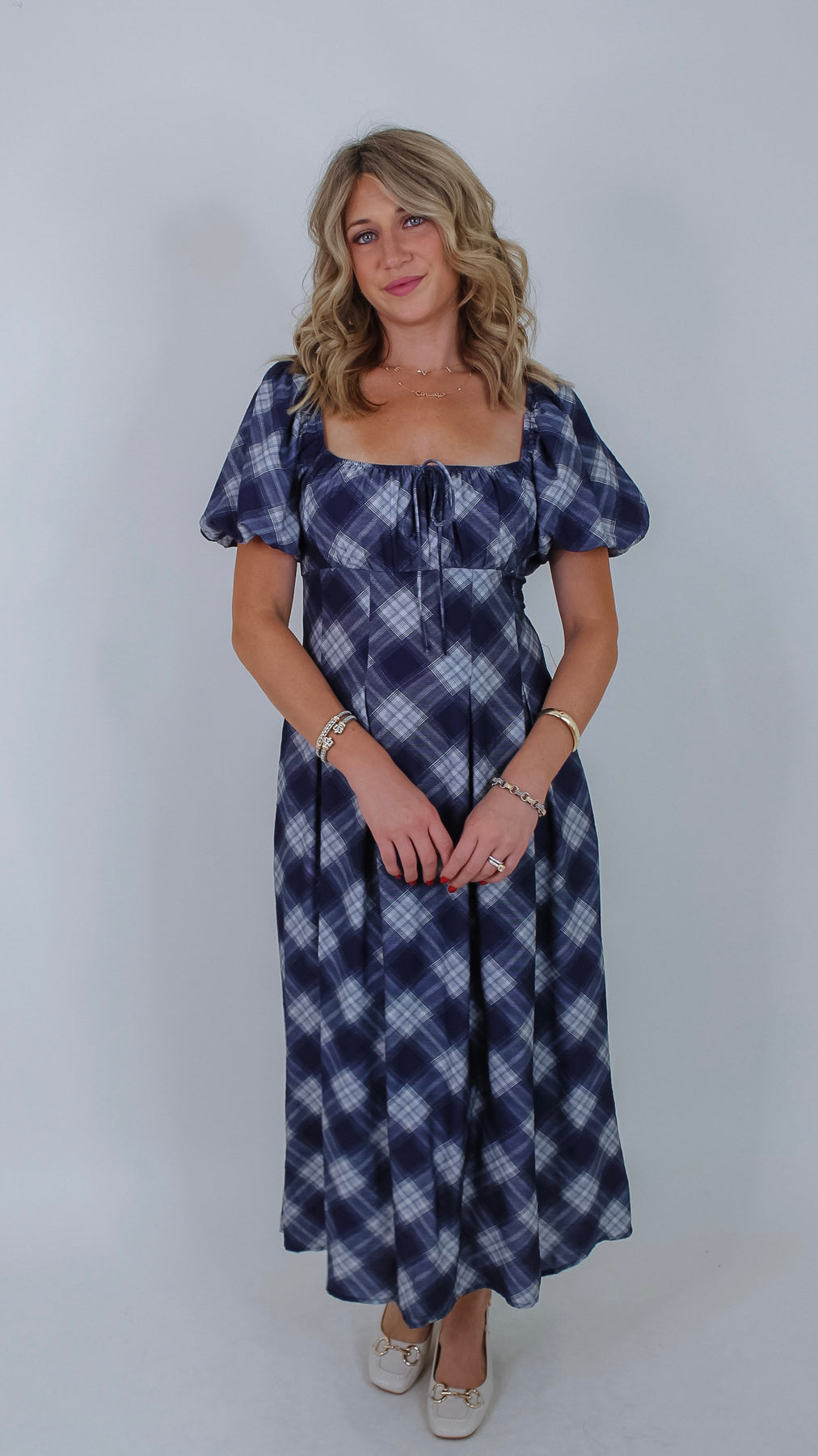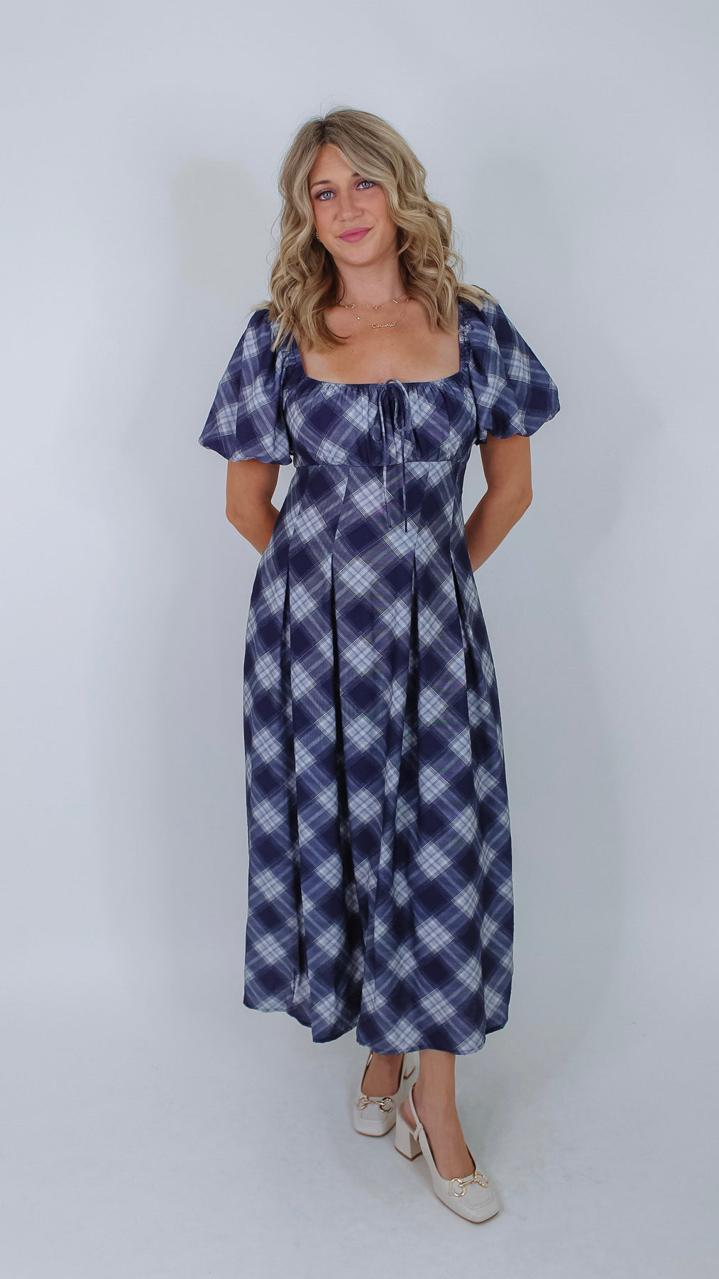 Brighten your day with the Shannon Blue Plaid Dress! This short sleeve midi dress pairs a fun blue plaid pattern with a breezy, flattering fit that's perfect for playful outings or relaxed weekends. Easy to wear and full of personality!