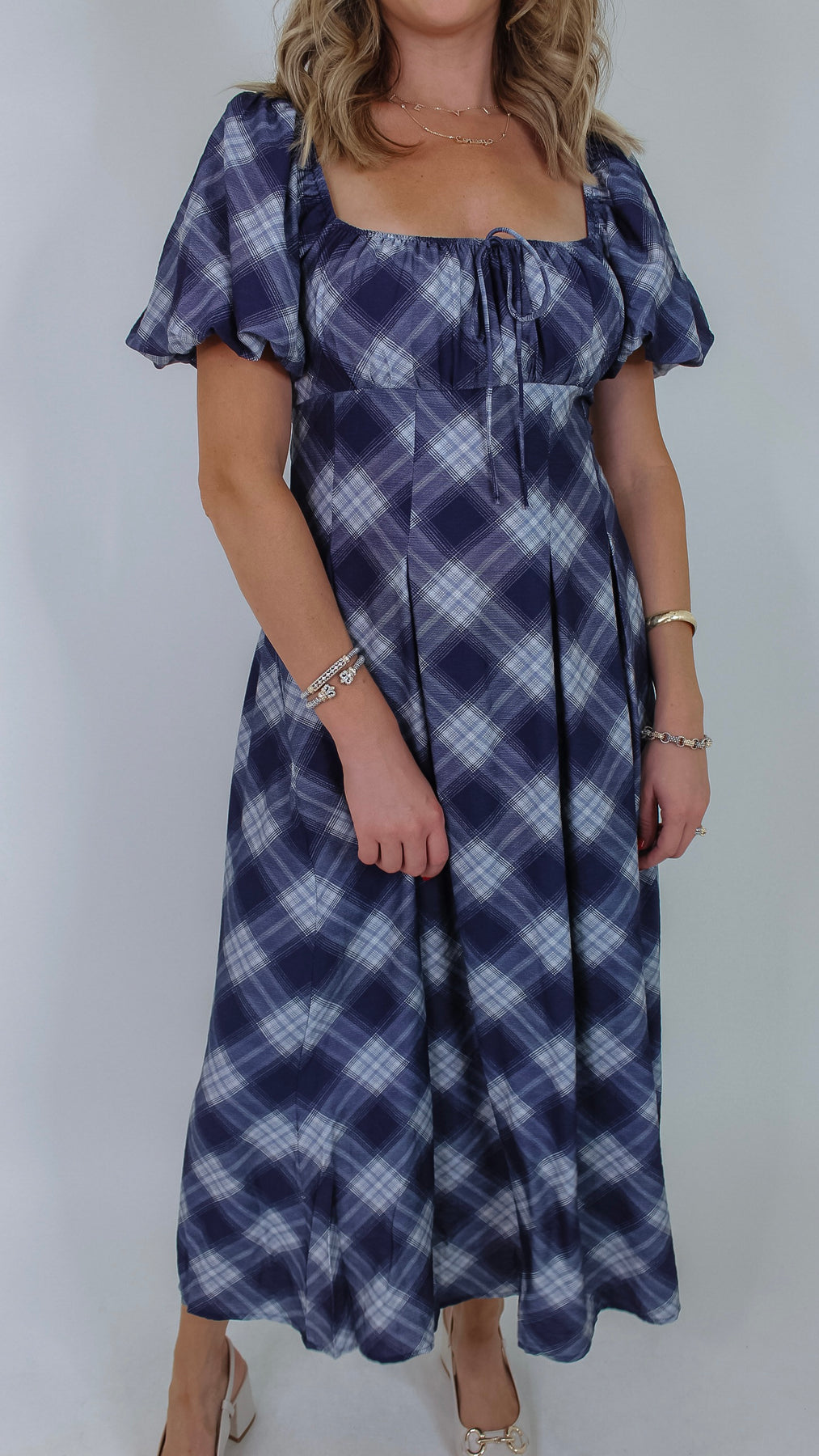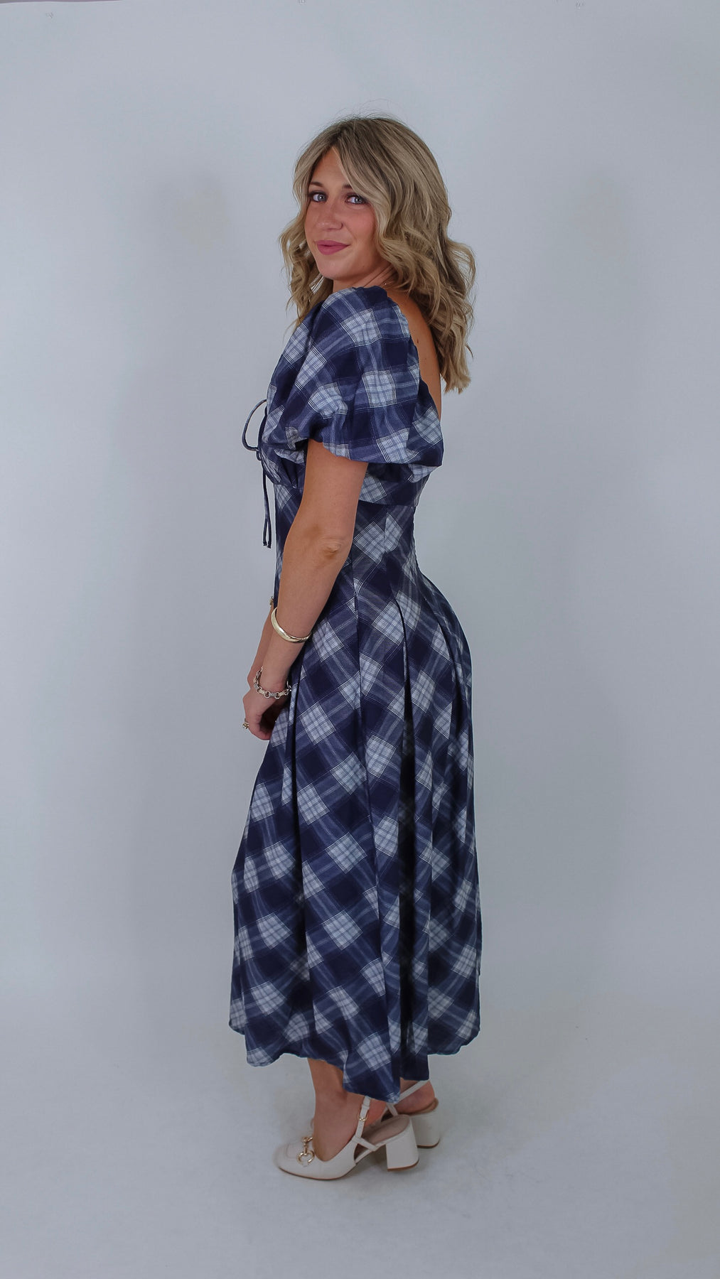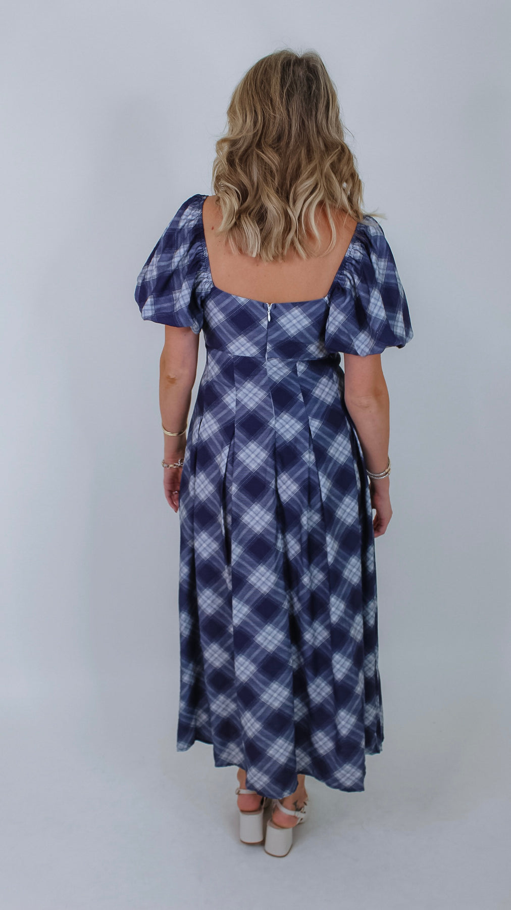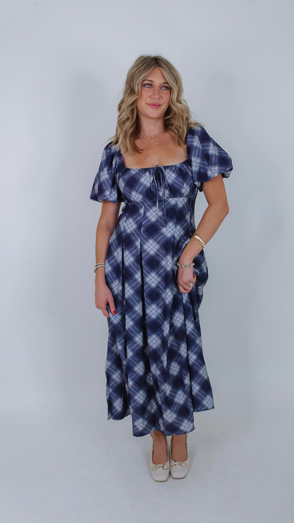 Brighten your day with the Shannon Blue Plaid Dress! This short sleeve midi dress pairs a fun blue plaid pattern with a breezy, flattering fit that's perfect for playful outings or relaxed weekends. Easy to wear and full of personality!