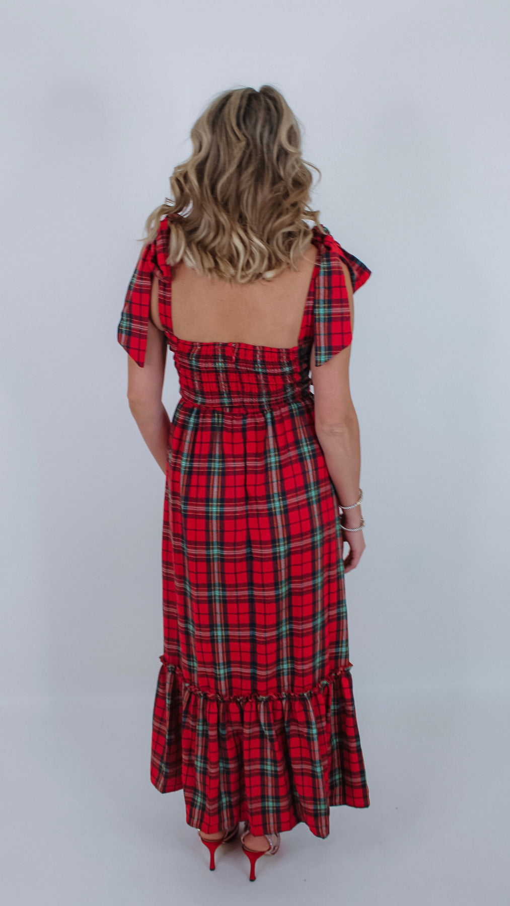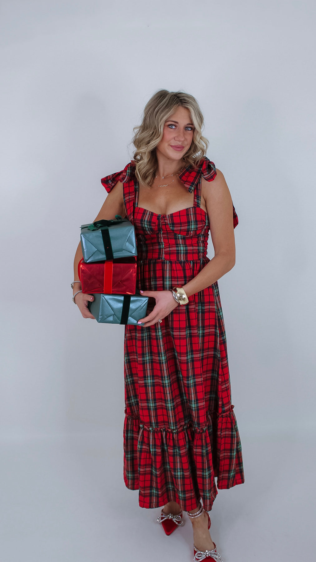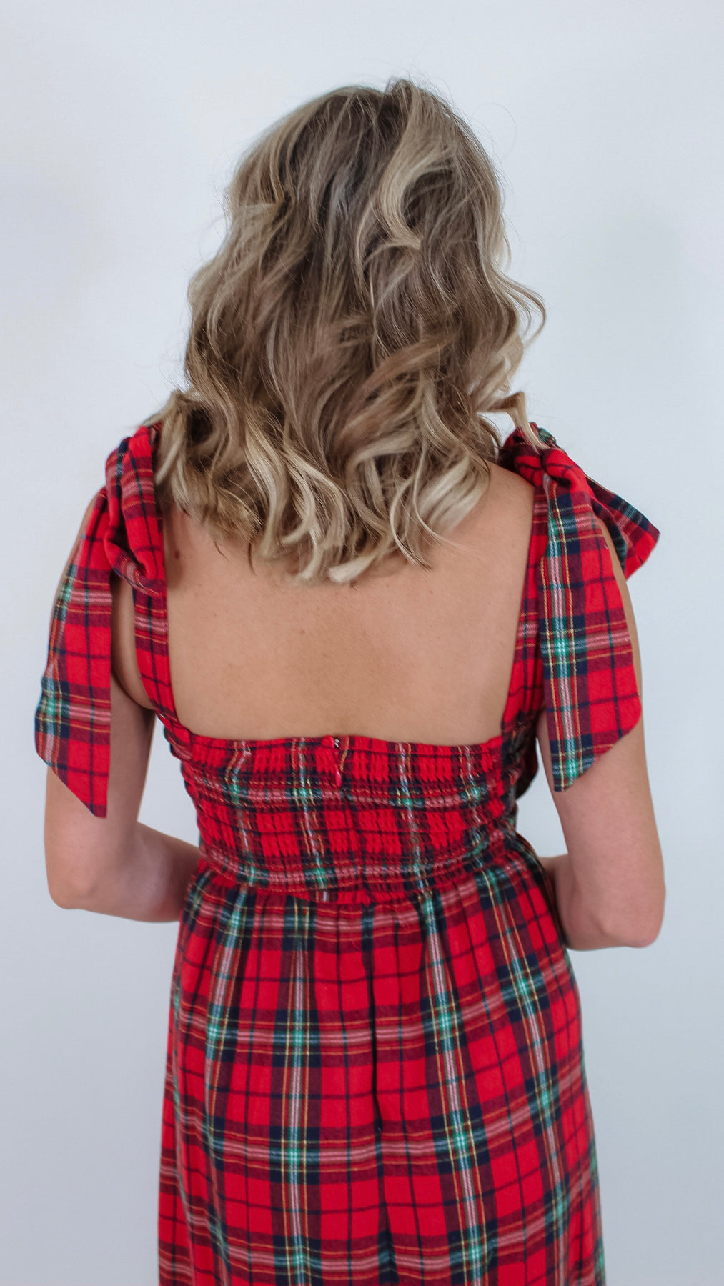 Celebrate the season in charm with this Christmas Plaid Midi Dress. Its festive red plaid pattern brings holiday cheer, while the flattering midi length offers comfort and style for all your merry moments. Perfect for twirling under the mistletoe or cozy gatherings by the fire, this dress adds a playful touch to your holiday wardrobe.