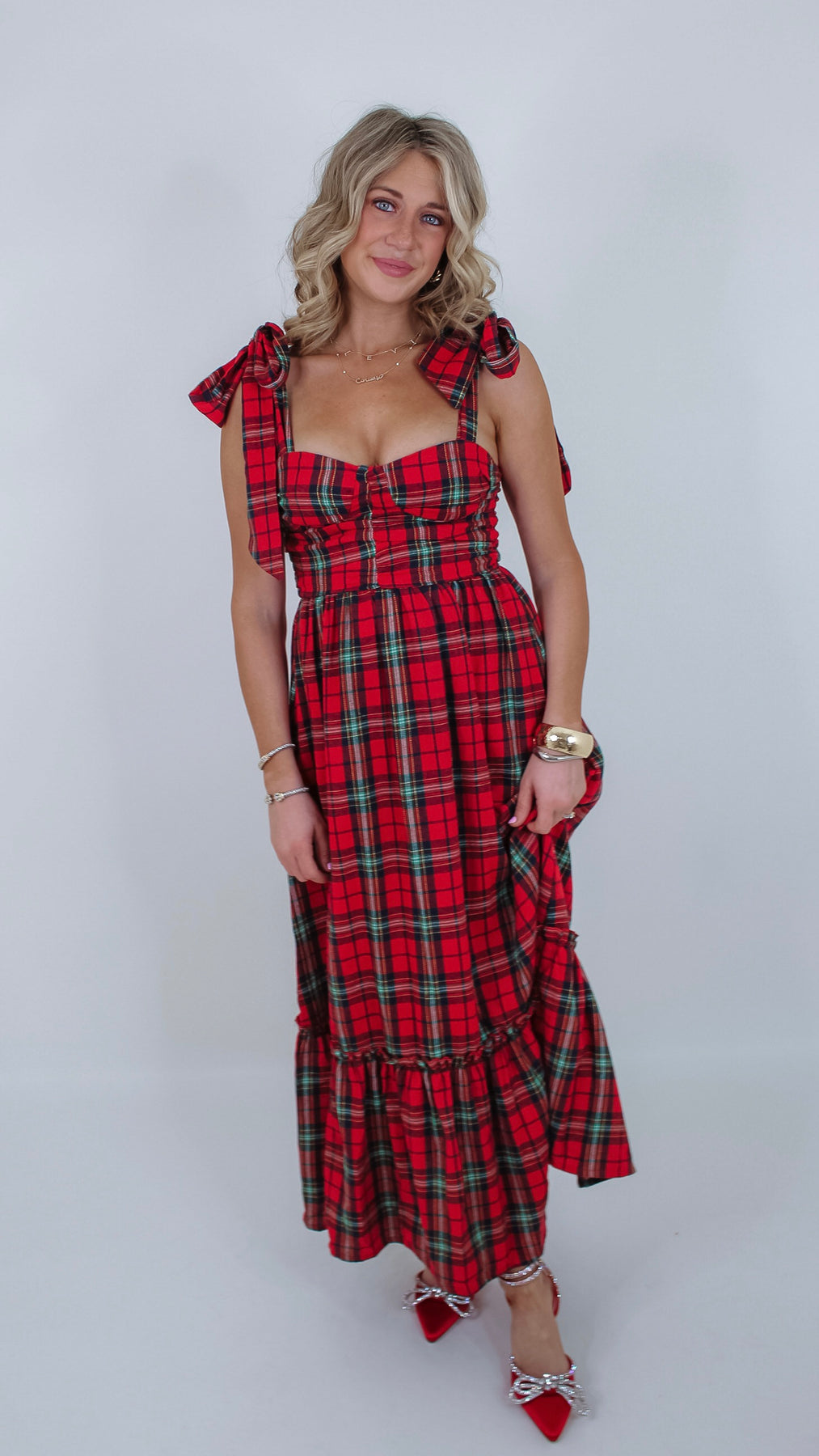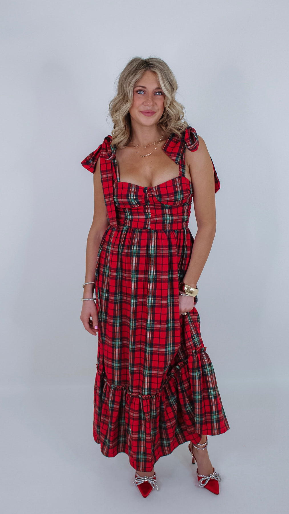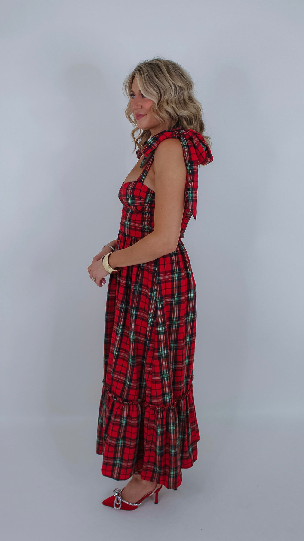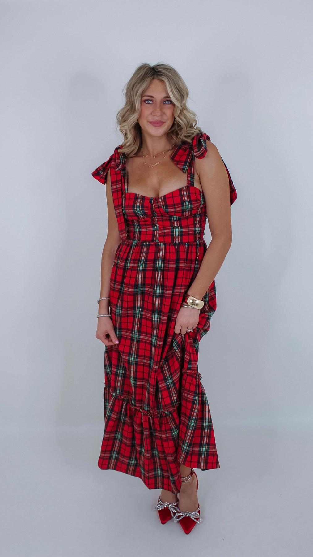 Celebrate the season in charm with this Christmas Plaid Midi Dress. Its festive red plaid pattern brings holiday cheer, while the flattering midi length offers comfort and style for all your merry moments. Perfect for twirling under the mistletoe or cozy gatherings by the fire, this dress adds a playful touch to your holiday wardrobe.