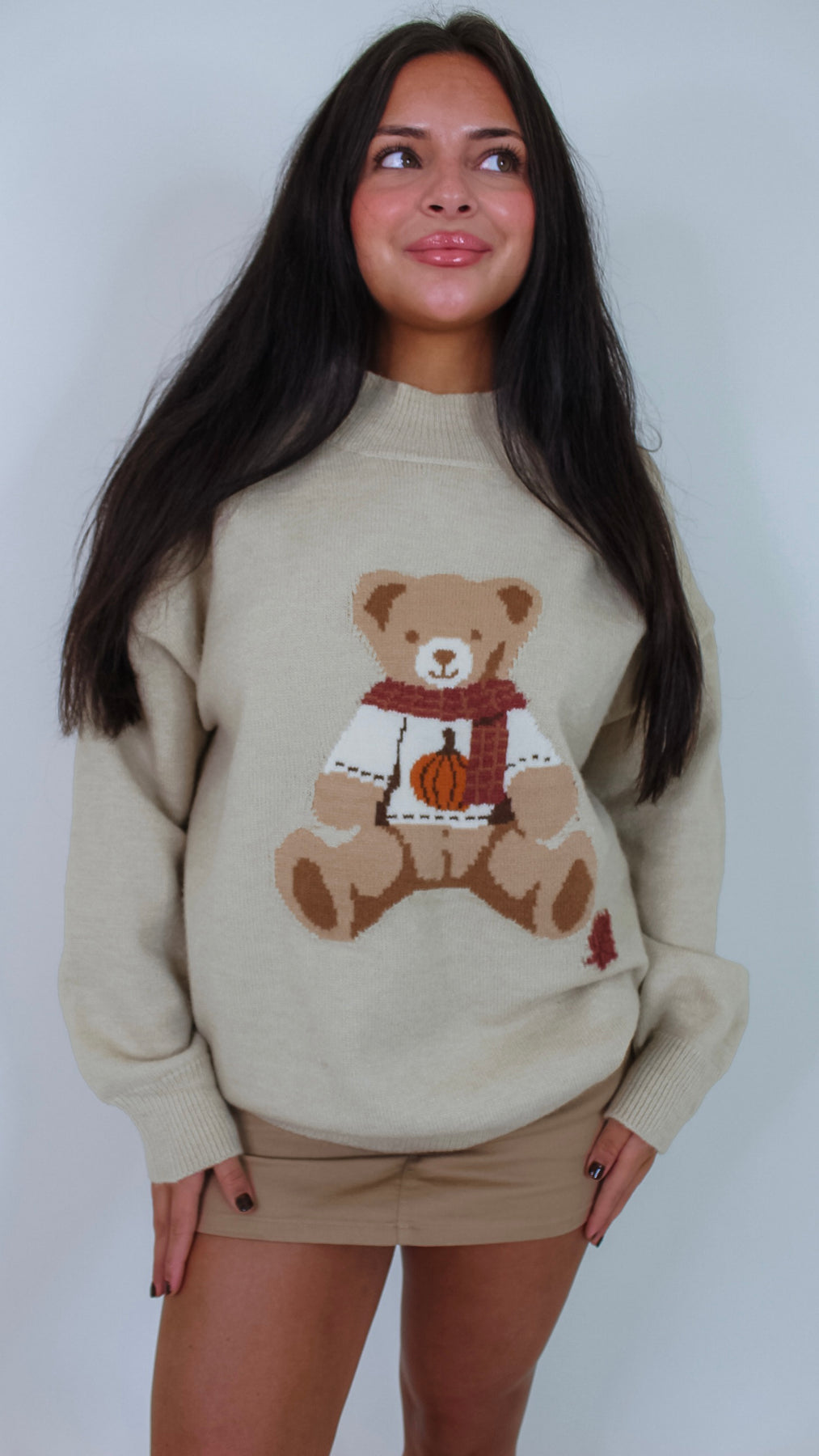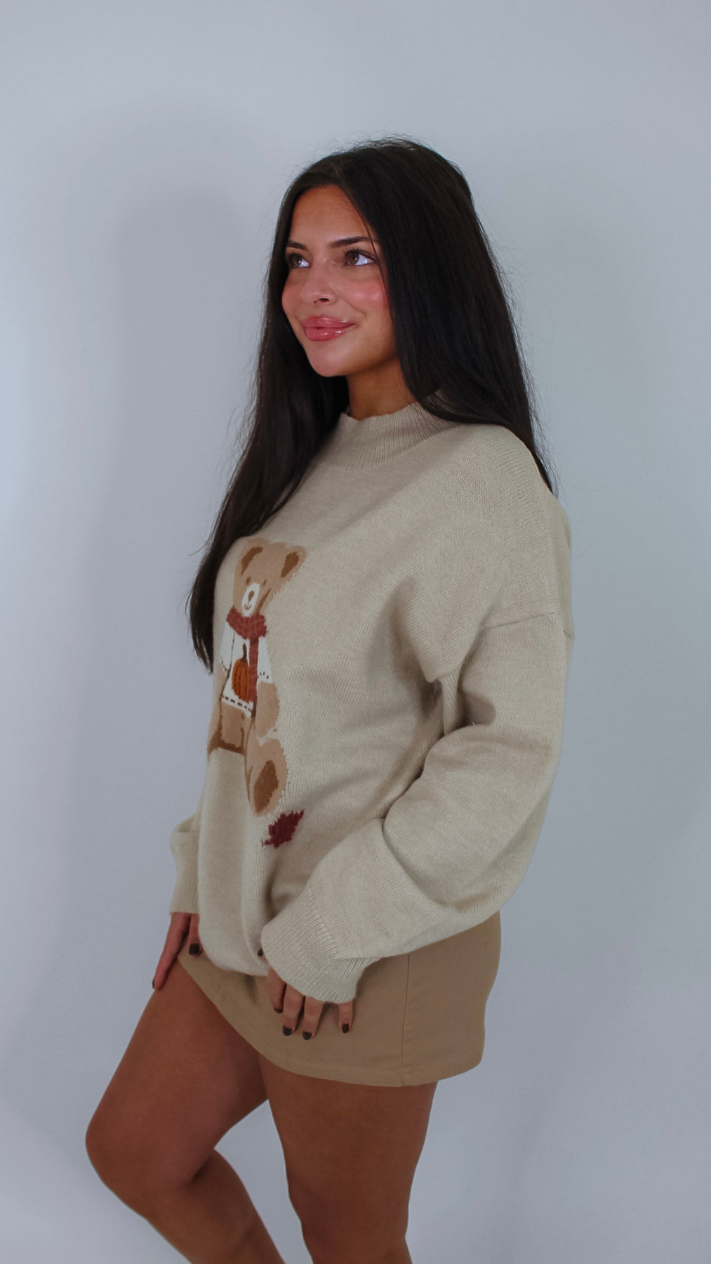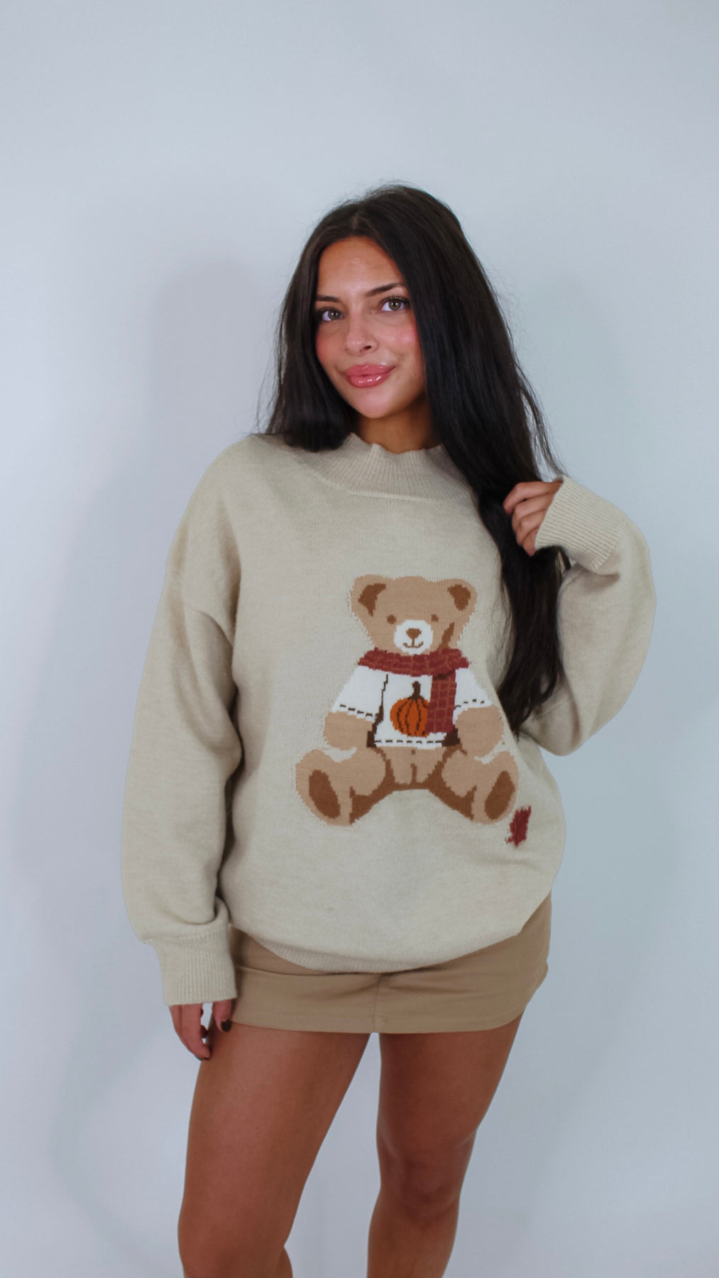 Stay cozy and playful this season with the Maddy Oatmeal Bear Sweater. Featuring a charming fall bear graphic, this soft oatmeal-colored sweater brings warmth and a touch of whimsy to your wardrobe. Perfect for crisp autumn days and fun adventures, it combines comfort with seasonal style effortlessly.