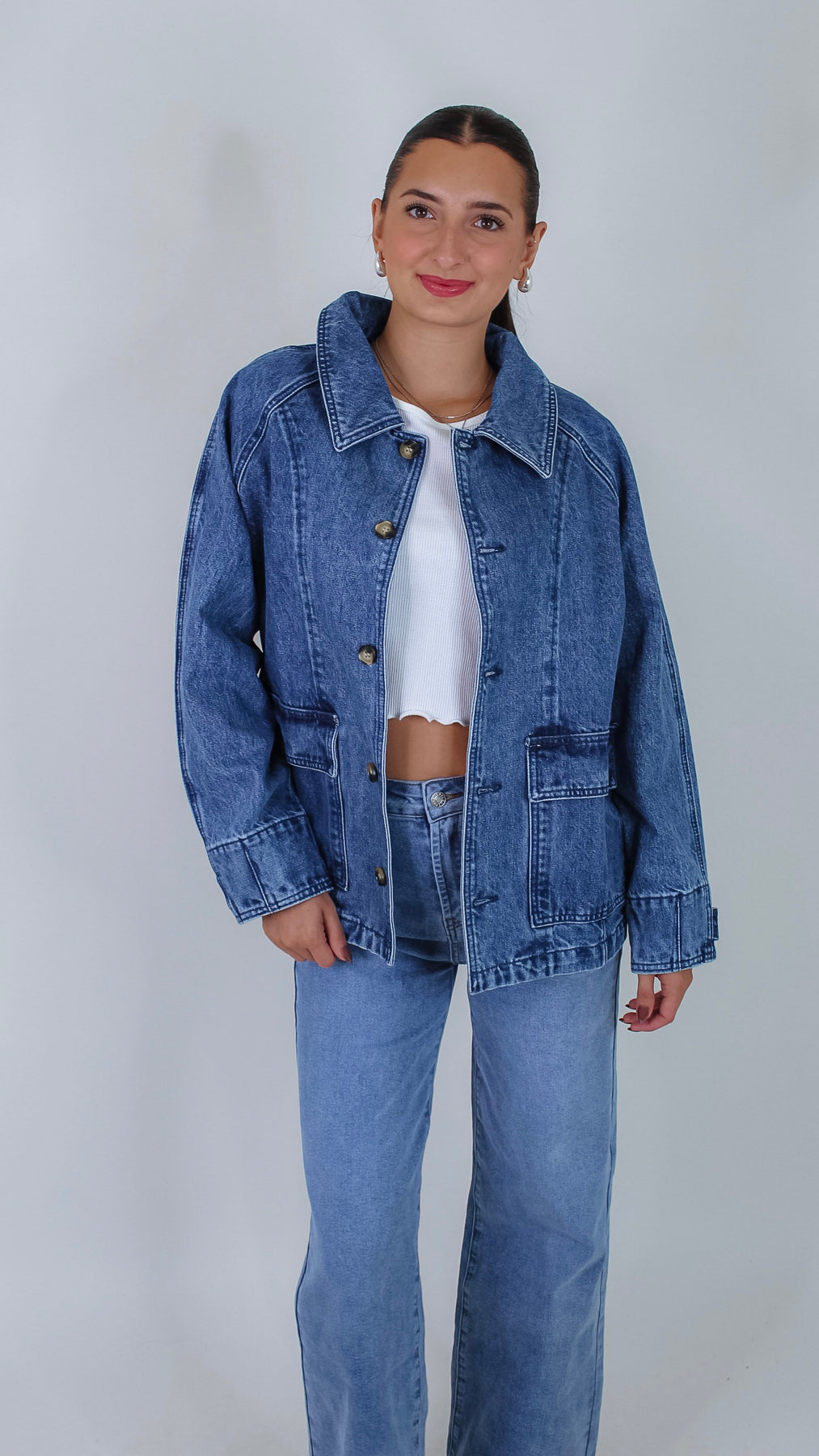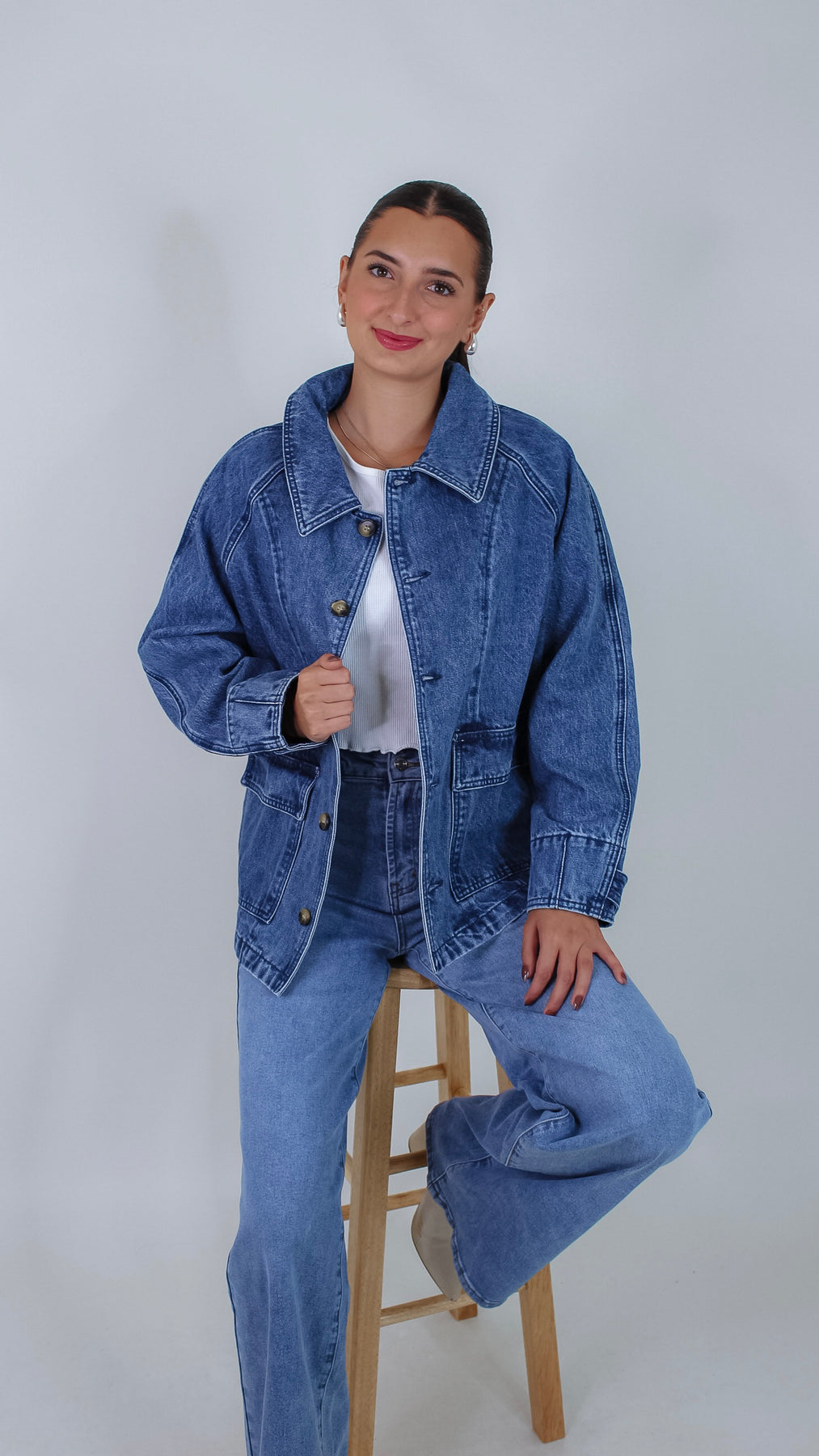 Meet your new favorite layer: the Ashtin Denim Jacket. With a classic button closure, this playful jacket adds a dash of effortless cool to any outfit. Perfect for those days when you want to keep it casual but stylish.