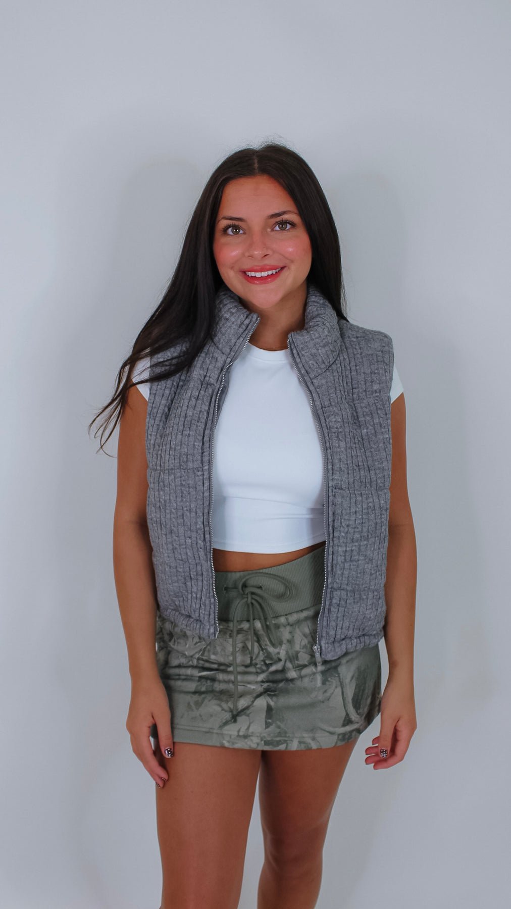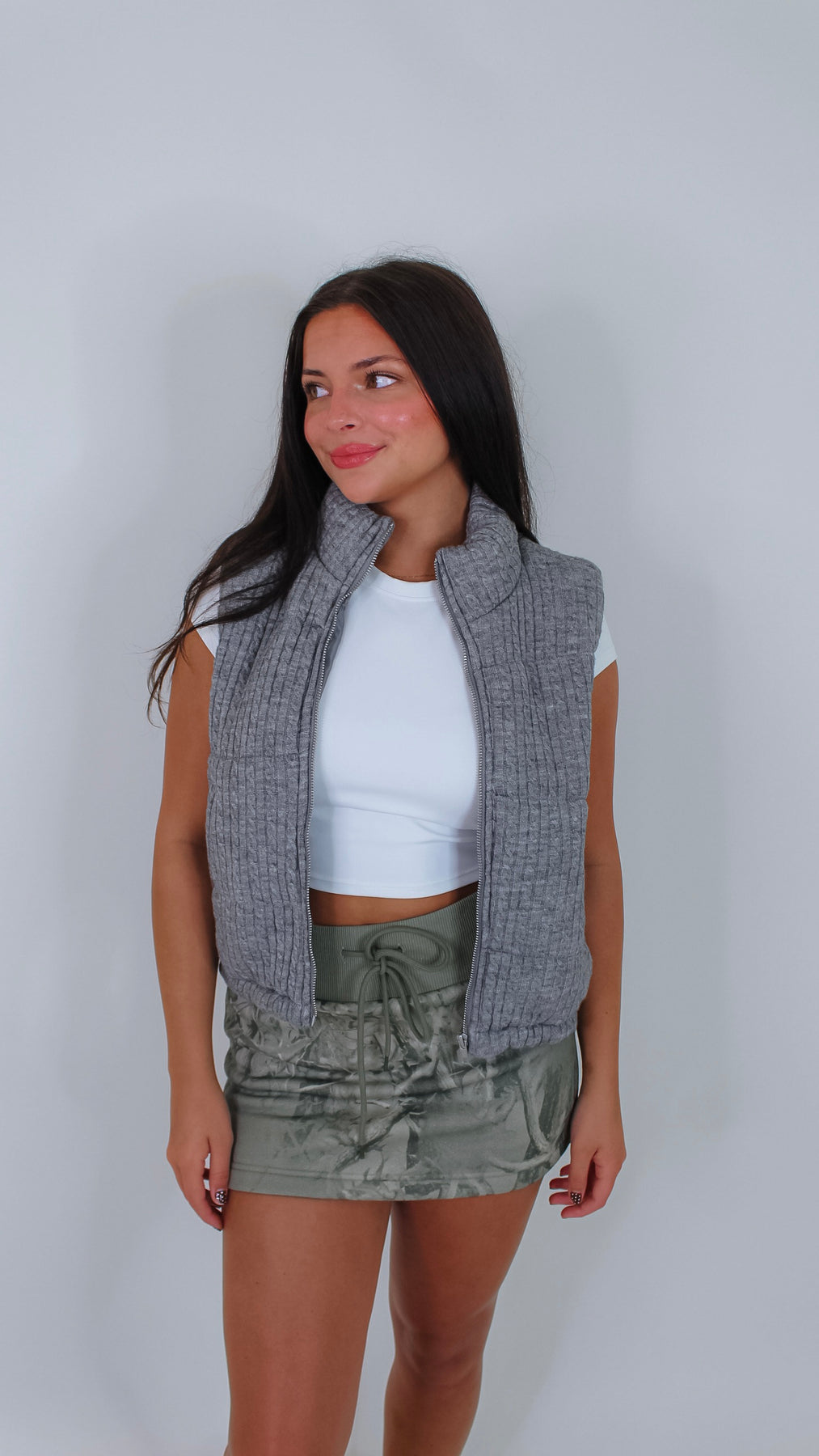 Cozy up in the Keep Watching Grey Puffer Vest—a playful layer perfect for keeping you warm without weighing you down. Its sleek grey shade pairs effortlessly with any outfit, while the puffer design adds a fun, sporty vibe.