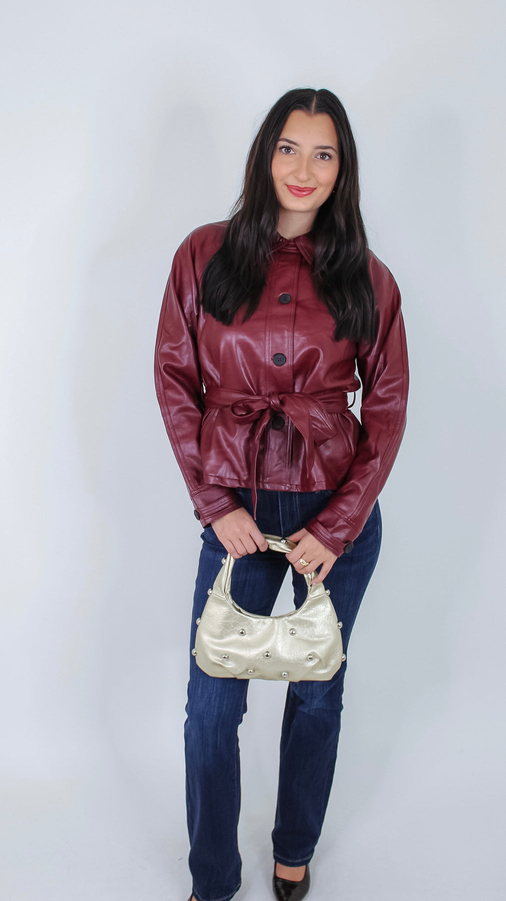 Step out in style with the Maison Burgundy Coat, a playful twist on classic leather. Its rich burgundy shade adds warmth and personality, while the smooth leather ensures you stay chic and comfortable. Perfect for adding a splash of color to your wardrobe and turning everyday moments into a fashion statement.