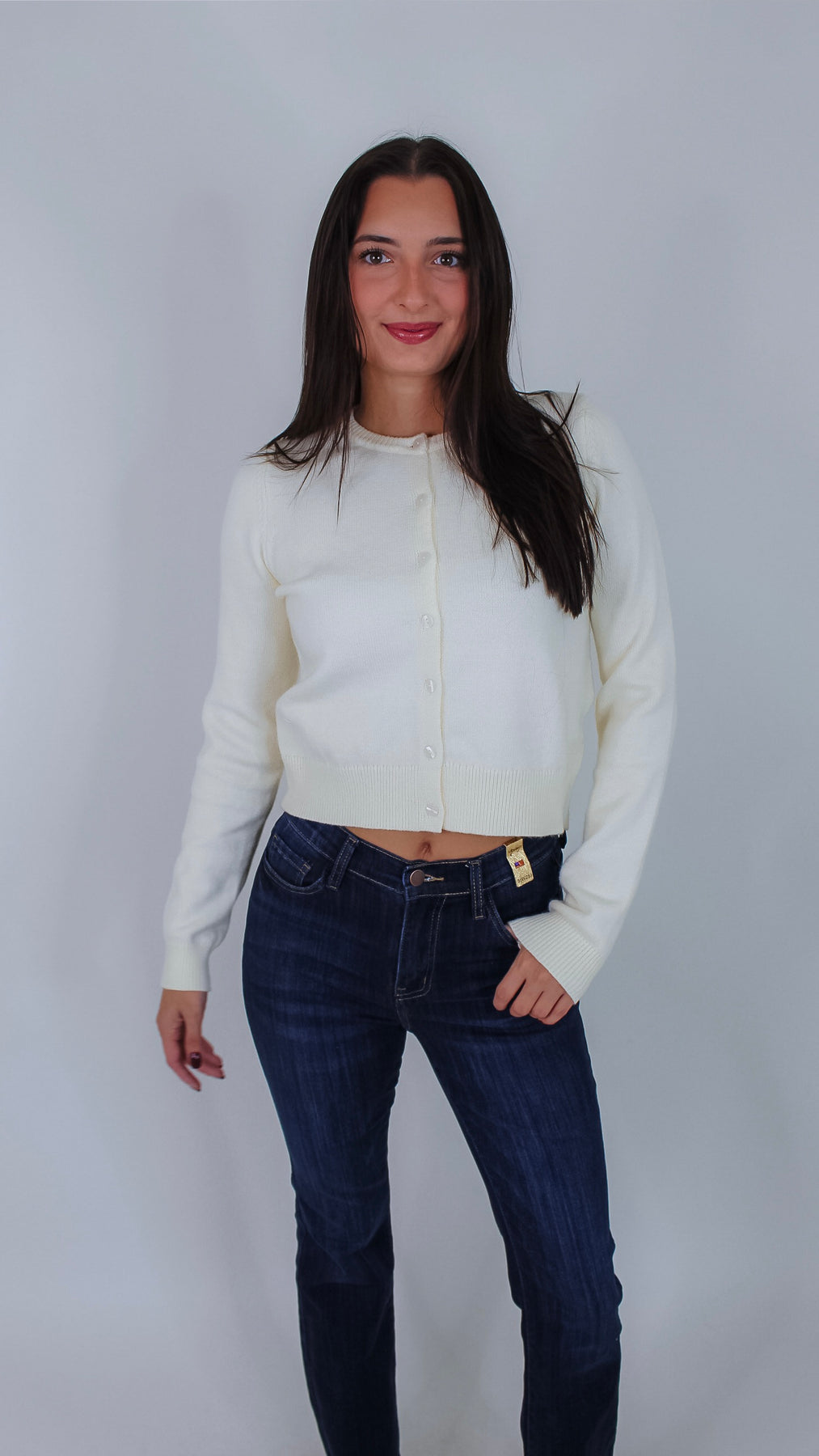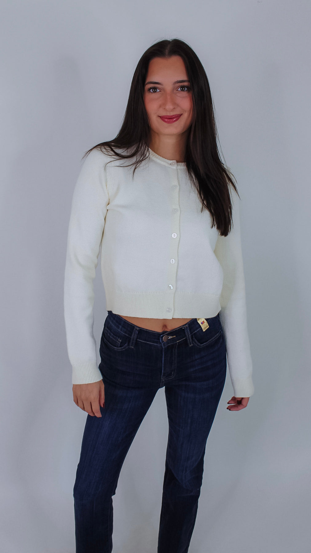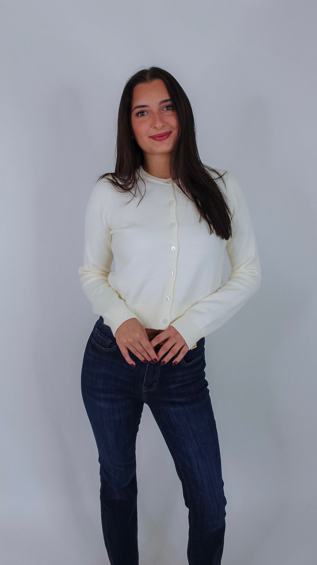 Stay cozy and cute in the Amelia Cardigan, a black knit favorite that buttons up the front for easy style. Its soft fabric makes it perfect for layering on cool days, while the cheerful color adds a splash of fun to any outfit. Whether you're out and about or just lounging, this cardigan keeps comfort and charm in one package.