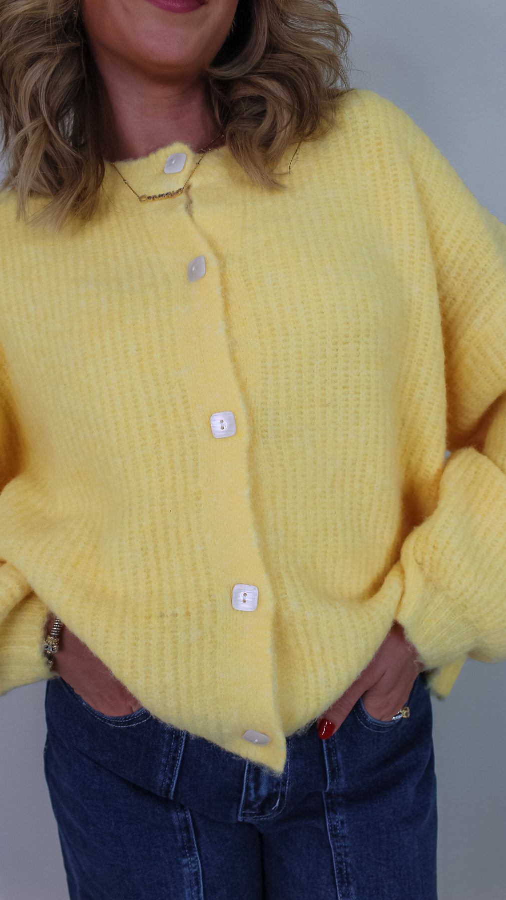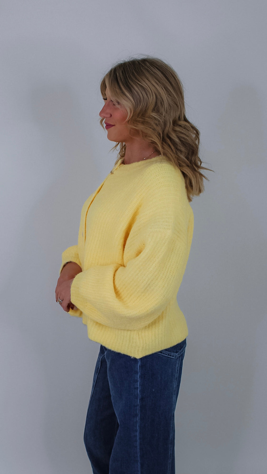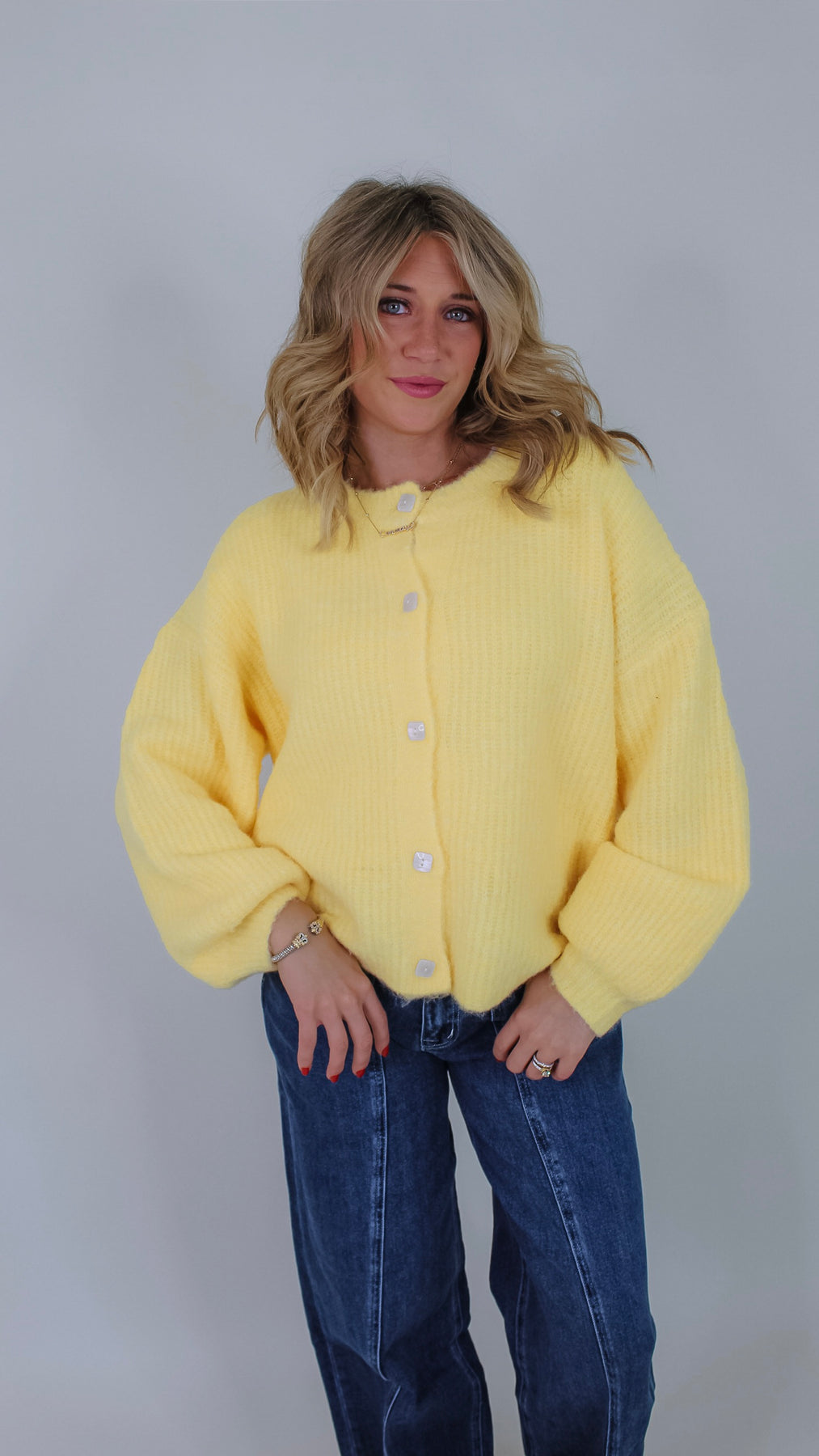 Brighten your cozy days with the Dean Butter Cardigan! This playful butter yellow sweater adds a splash of sunshine to any outfit while keeping you comfortably warm. Perfect for layering, its soft fabric invites you to stay snuggled up or step out in style with a cheerful pop of color.