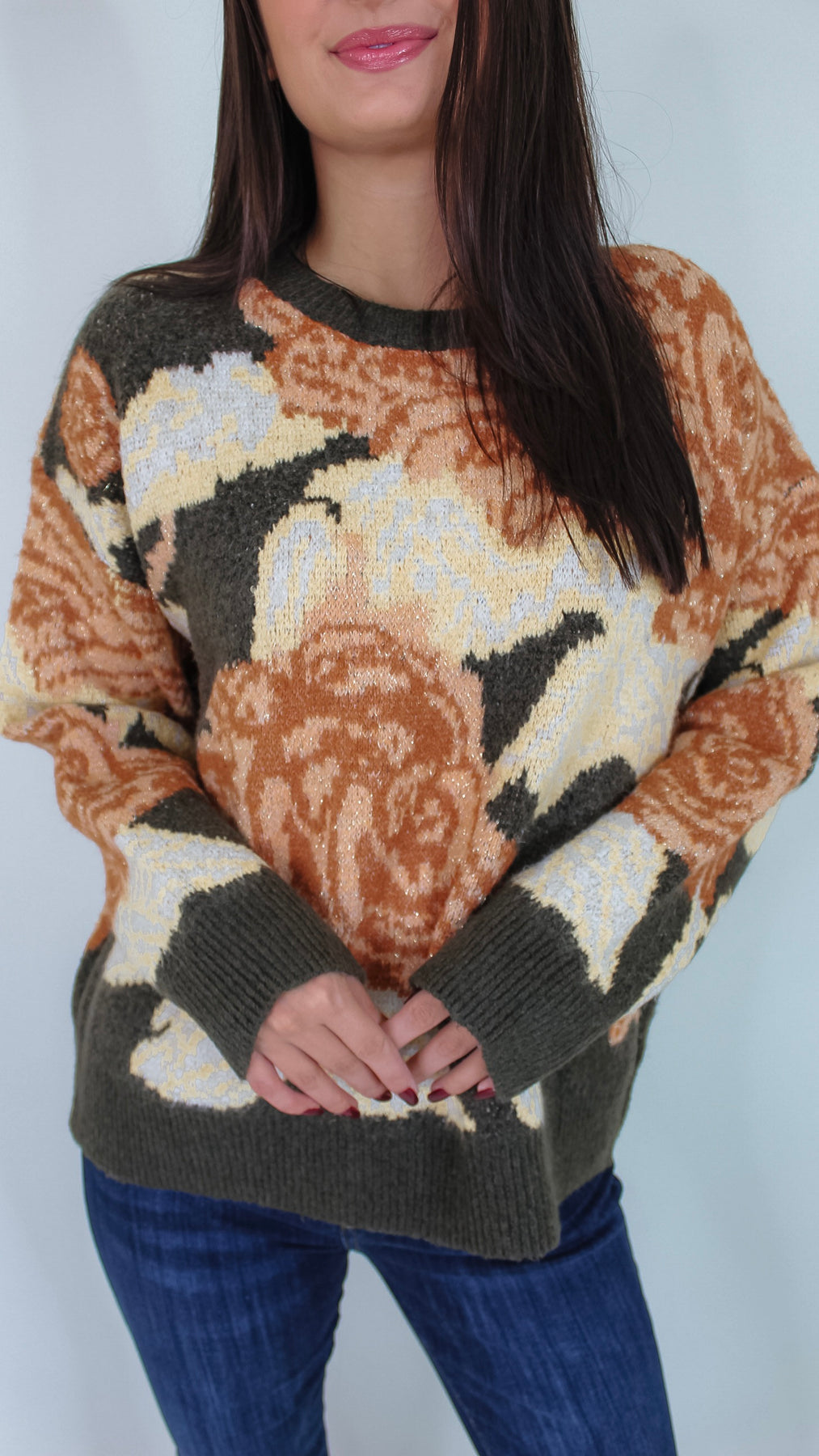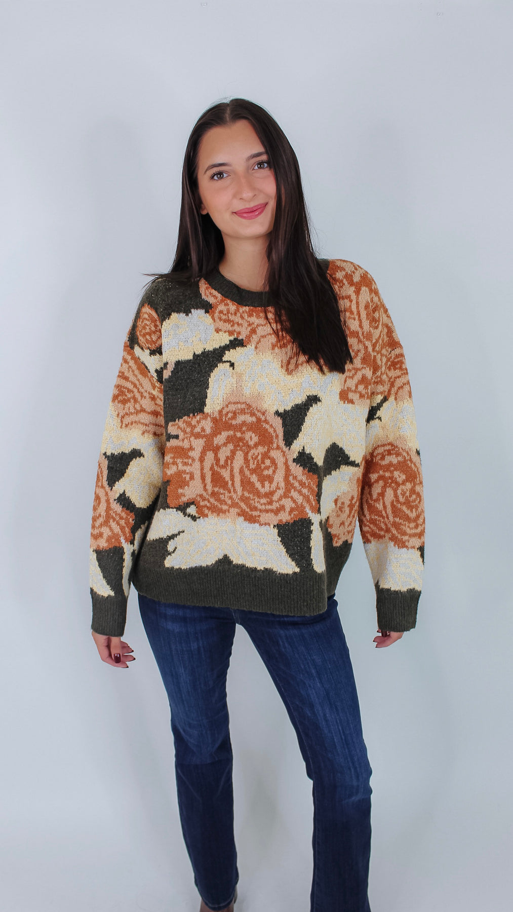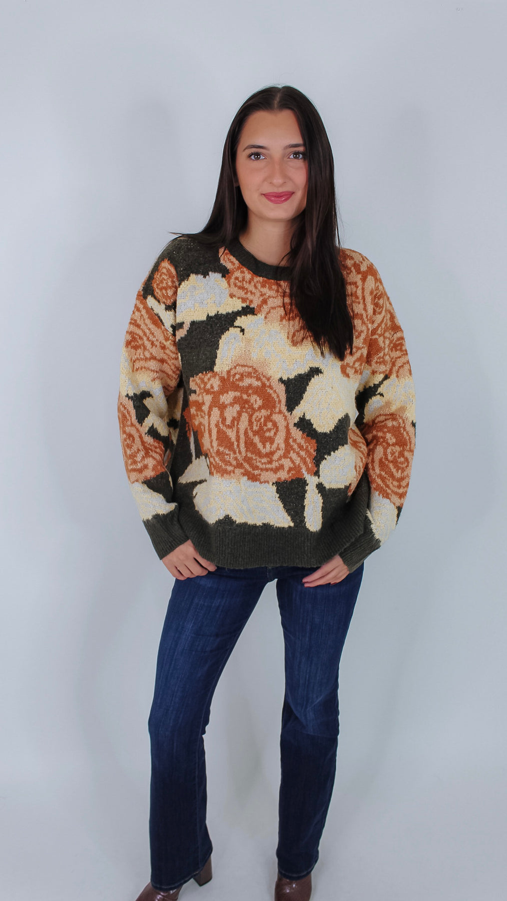 Bring a fresh touch to your cozy wardrobe with the Best Bet Olive Floral Sweater. Its olive green backdrop makes the playful floral pattern pop, perfect for brightening up chilly days. Soft and comfortable, this sweater pairs effortlessly with jeans or skirts.