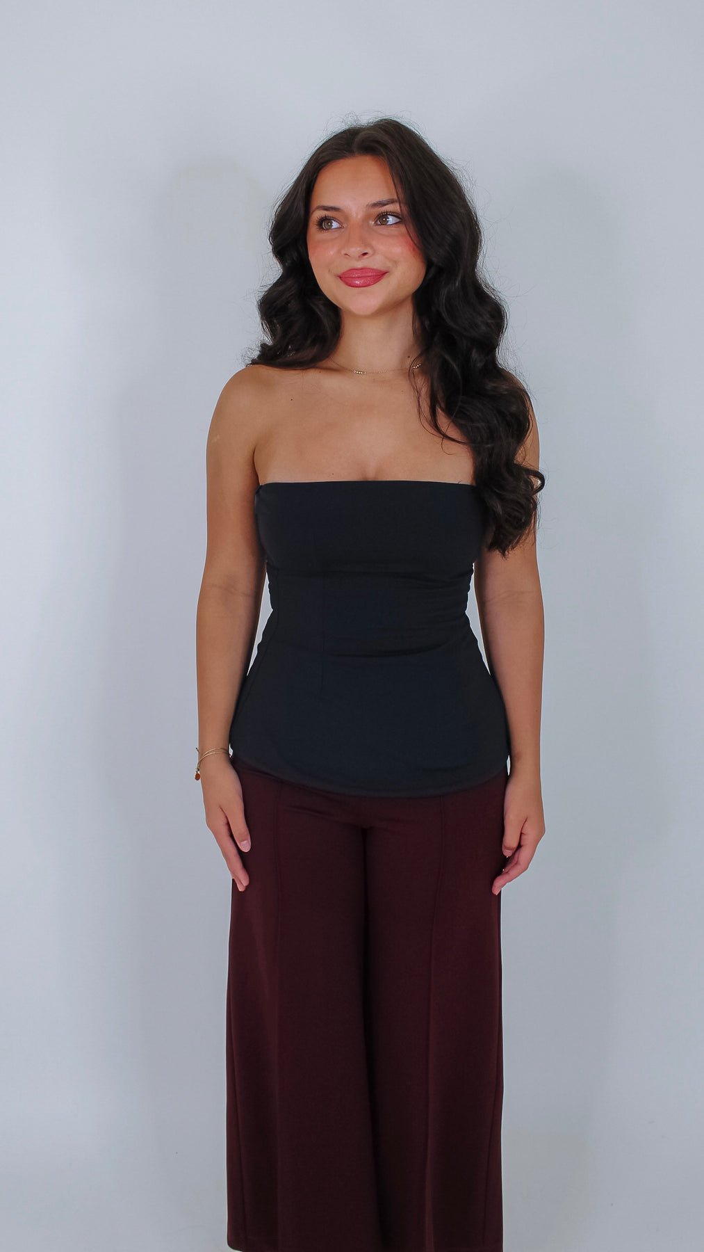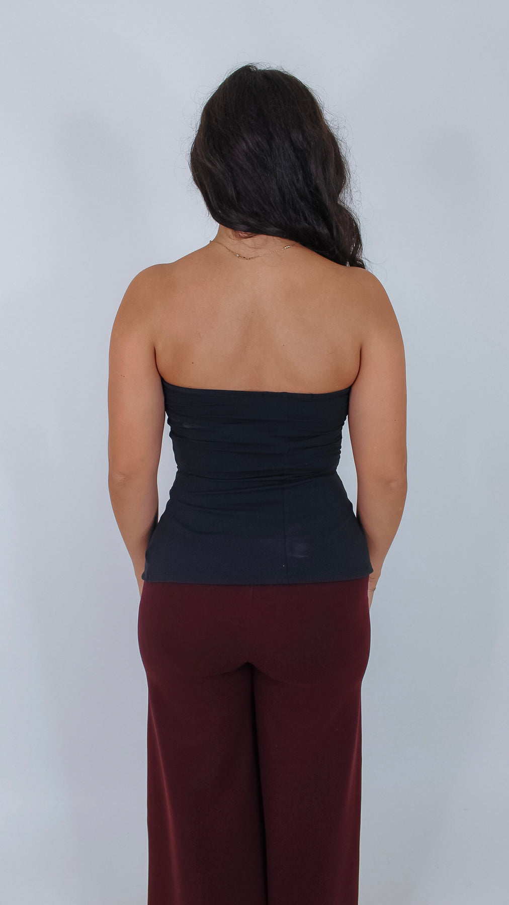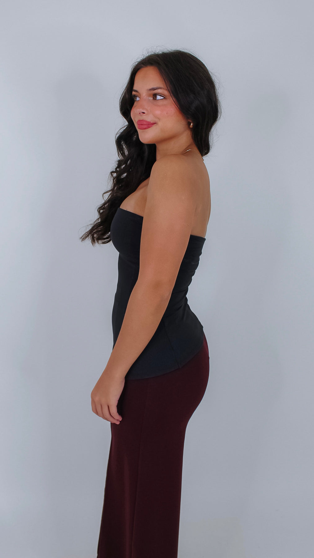 Elevate your look with the Camille Tube Top in sleek black. This timeless piece hugs your silhouette perfectly, offering a flirty, fun vibe that's ready to turn heads. Whether you're layering up or going solo, it’s your go-to for effortless style and endless outfit possibilities.