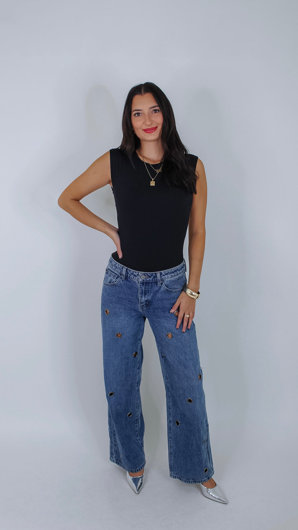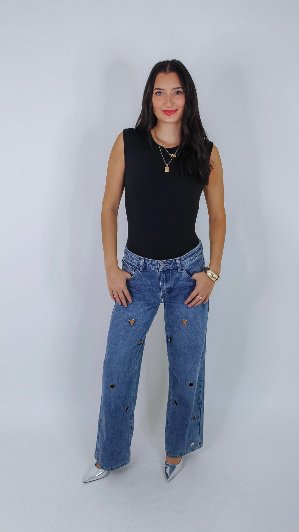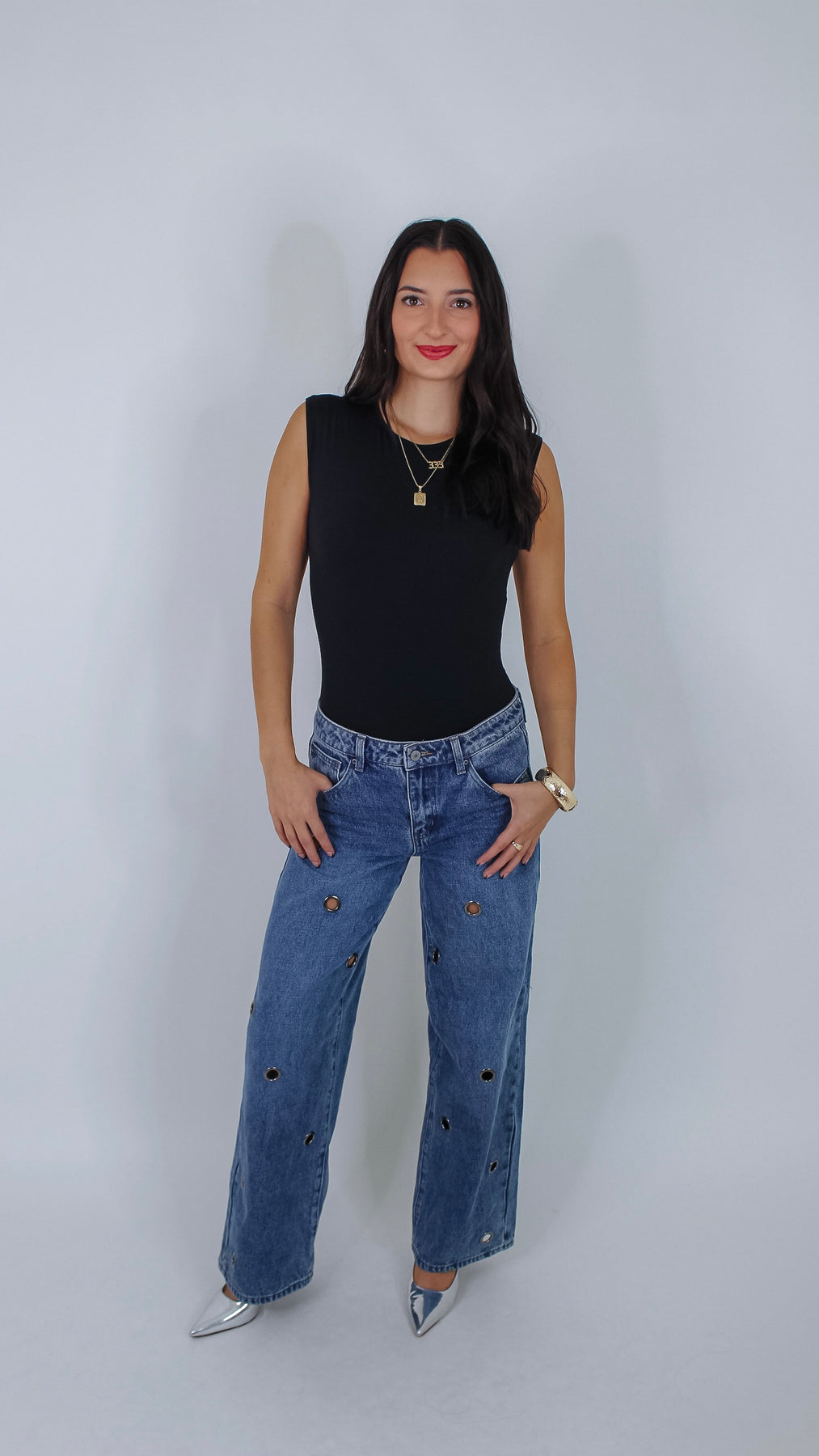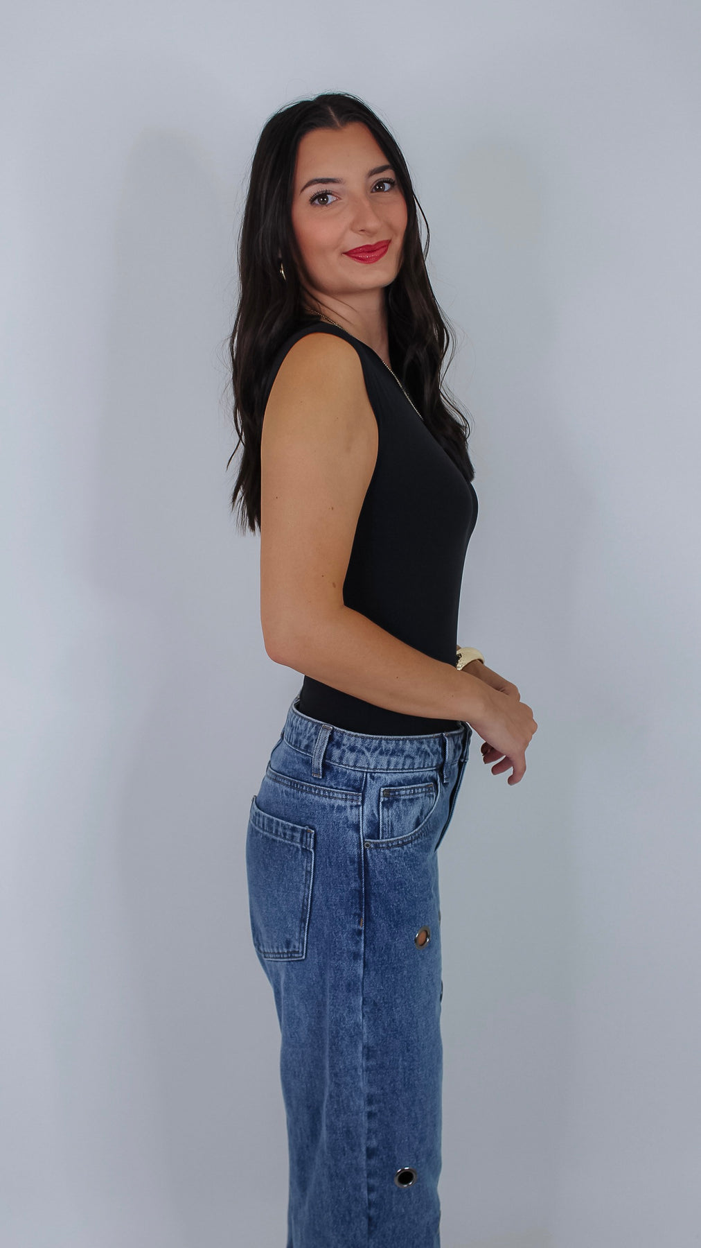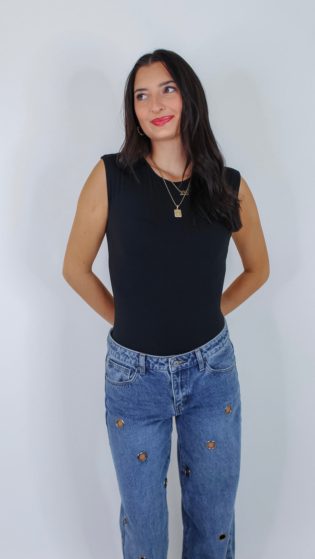 Step into effortless cool with the Cool Girl Black Bodysuit. Its simple round neck and sleek fit make it a great foundation for any outfit, perfect for layering or wearing alone.