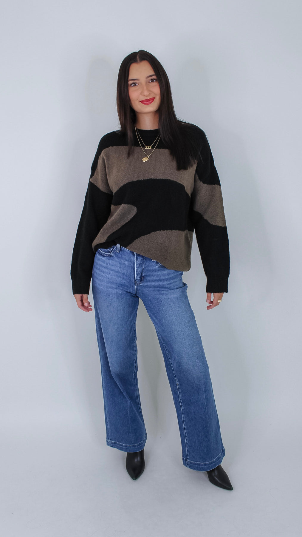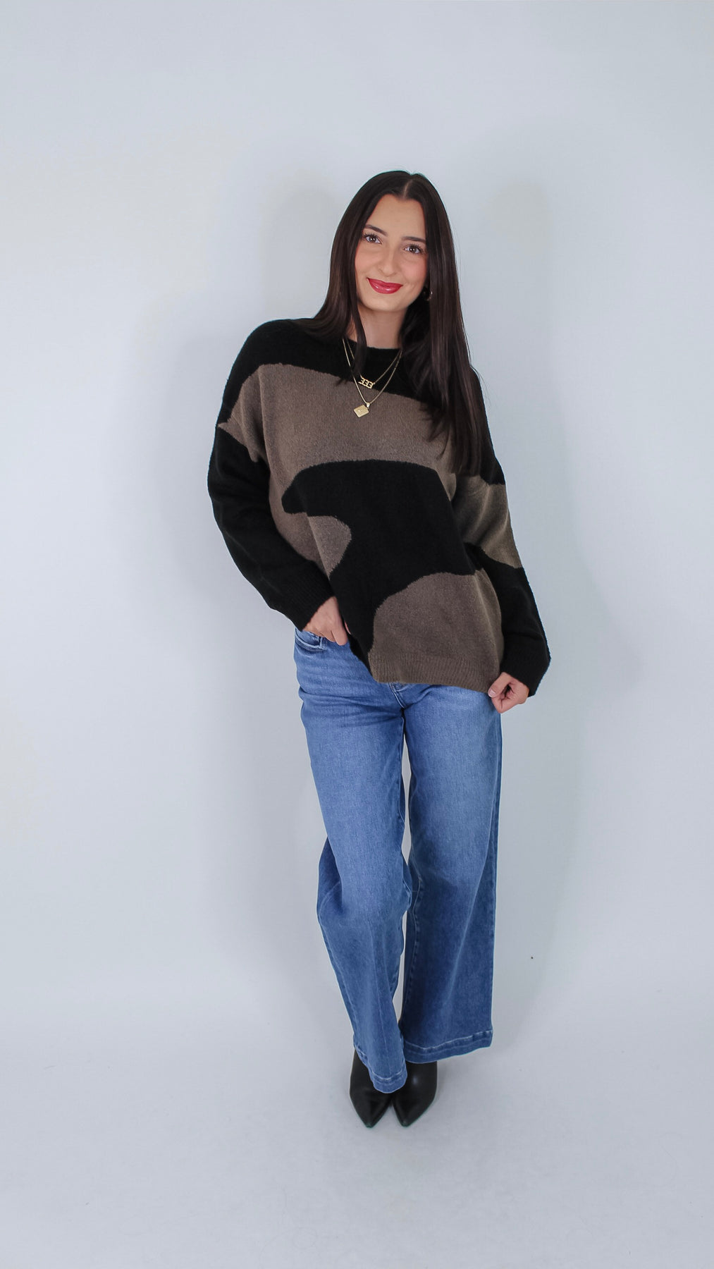 Wrap yourself in cozy charm with the Kenna Black Abstract Sweater. Its bold, artistic print adds a fun twist to your everyday look, while the soft fabric keeps you comfy all day long.