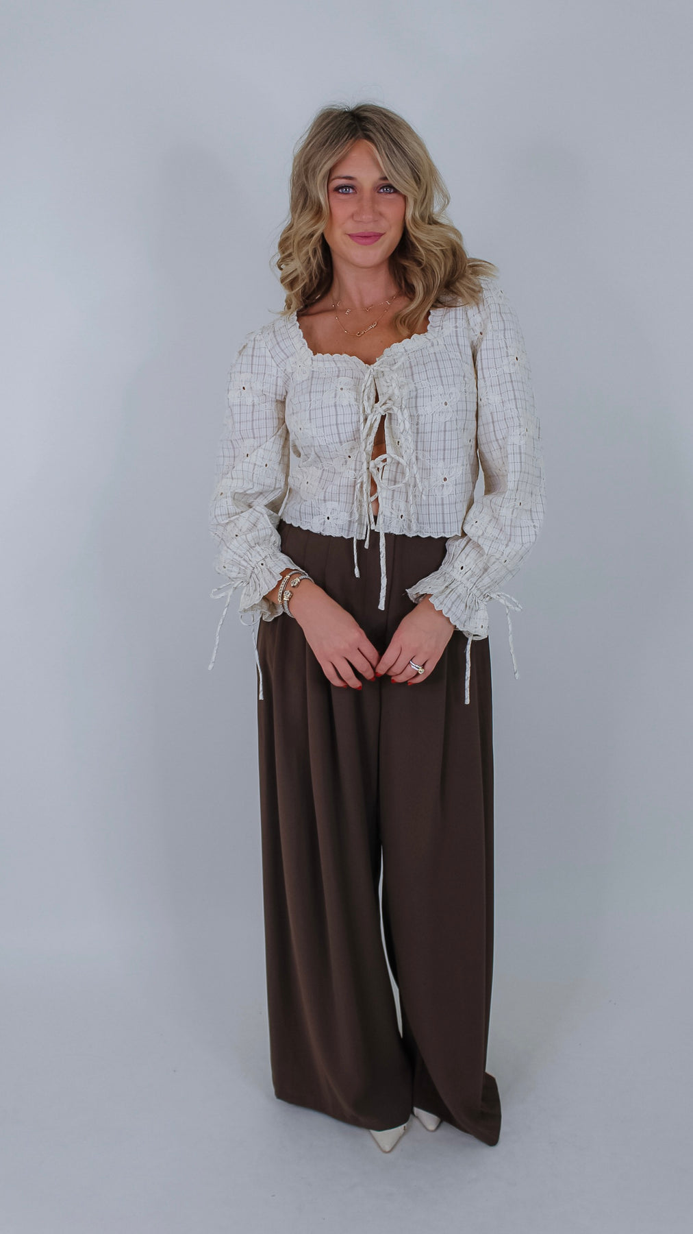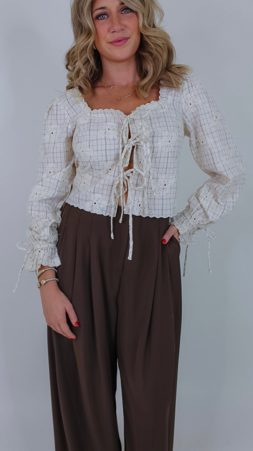The Kyler Beige Top offers a sophisticated blend of comfort and style with its long sleeves and expertly crafted floral embroidery. Designed in a versatile beige hue, this top provides a polished look suitable for both professional settings and refined casual wear. Its subtle detailing and quality construction make it a standout piece in any wardrobe.