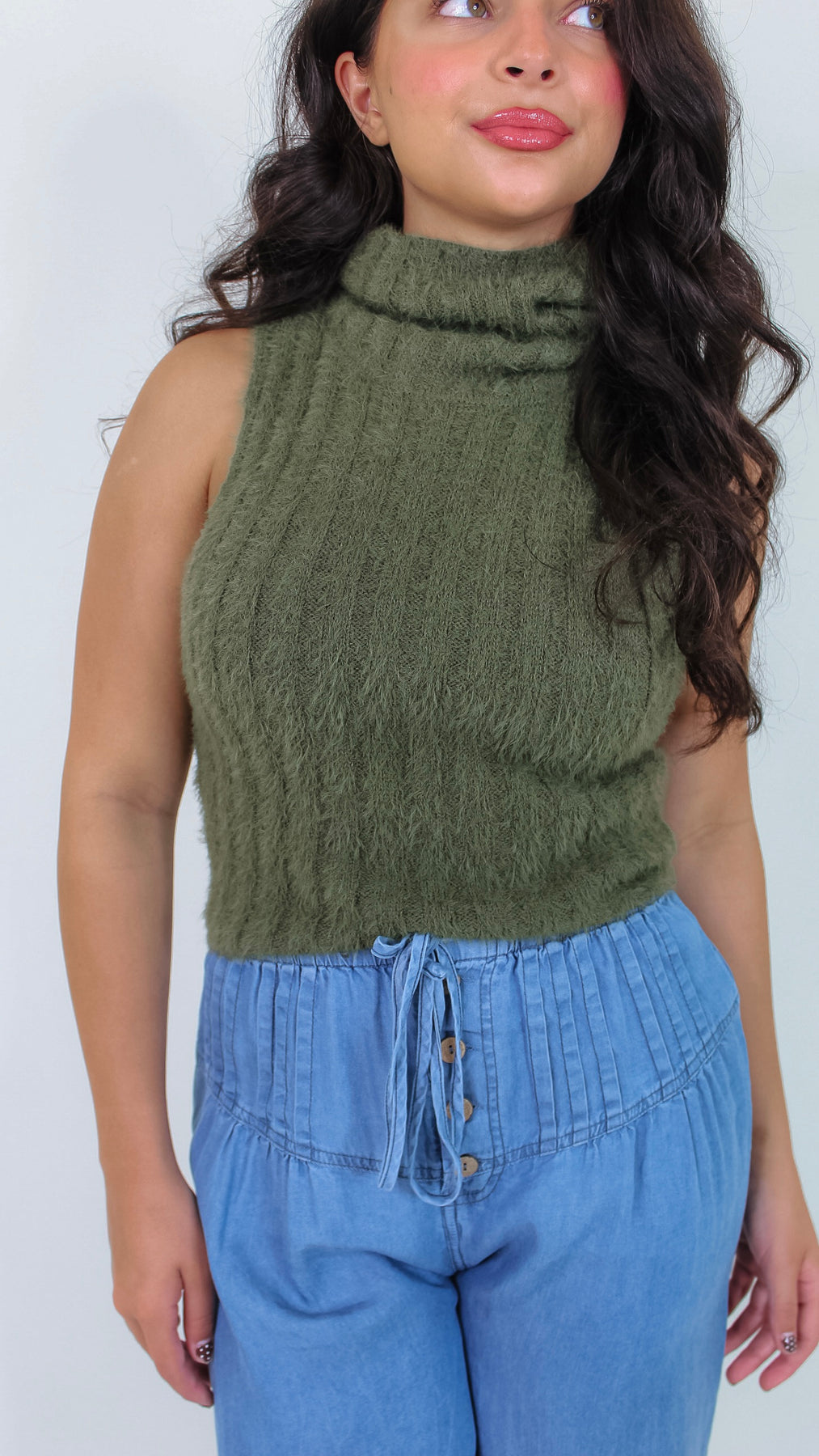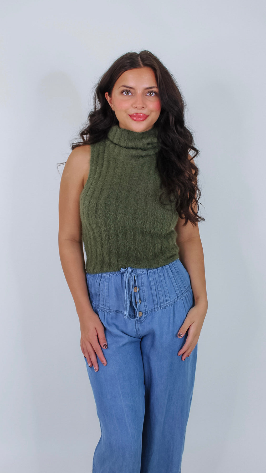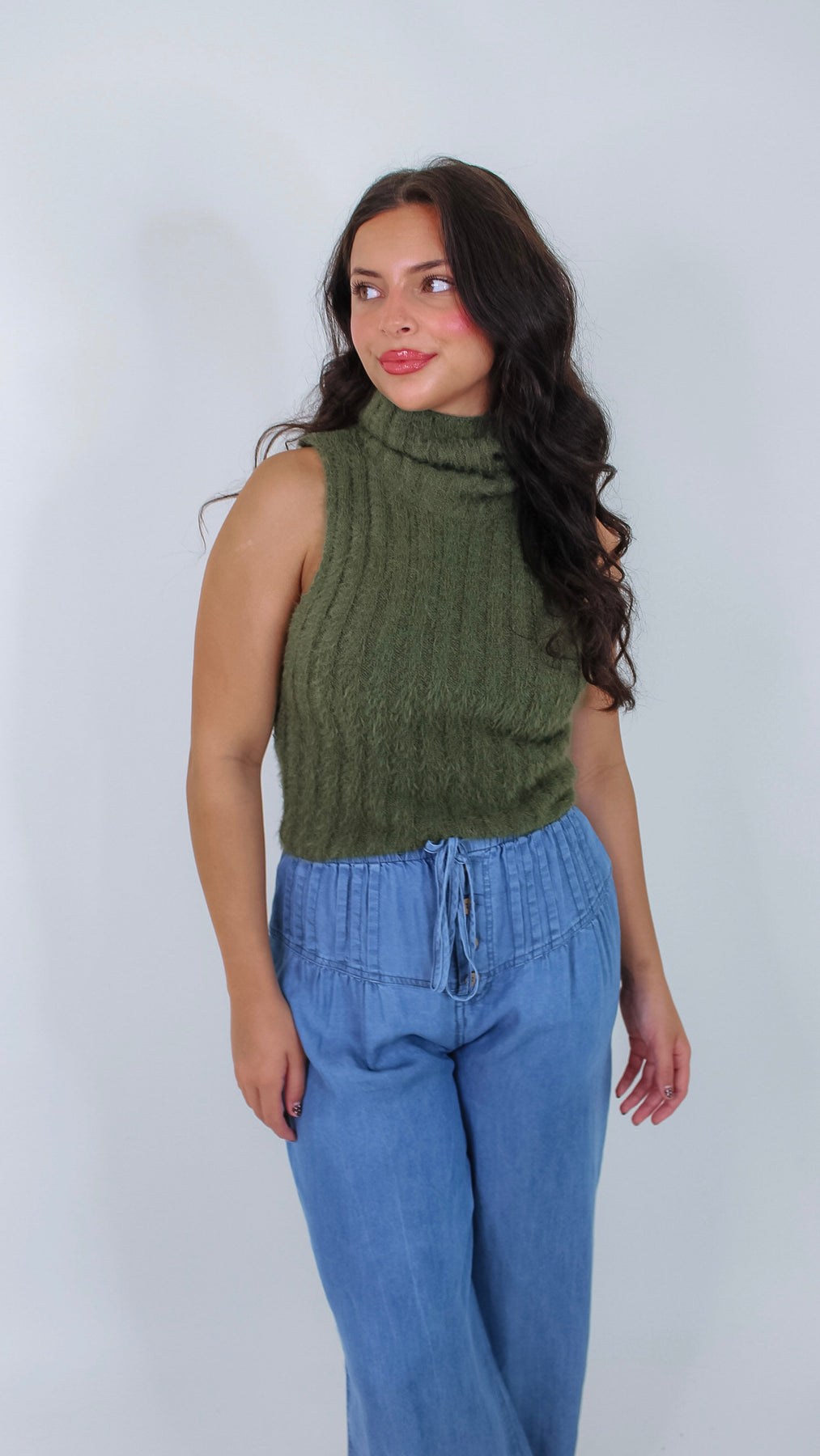 Elevate your layering game with the Valentina Olive Sleeveless Turtleneck. This playful olive green tank combines cozy turtleneck warmth with breezy sleeveless comfort, perfect for mixing and matching all season long. Its sleek silhouette adds a fun twist to any outfit, making it your new go-to for effortless style.