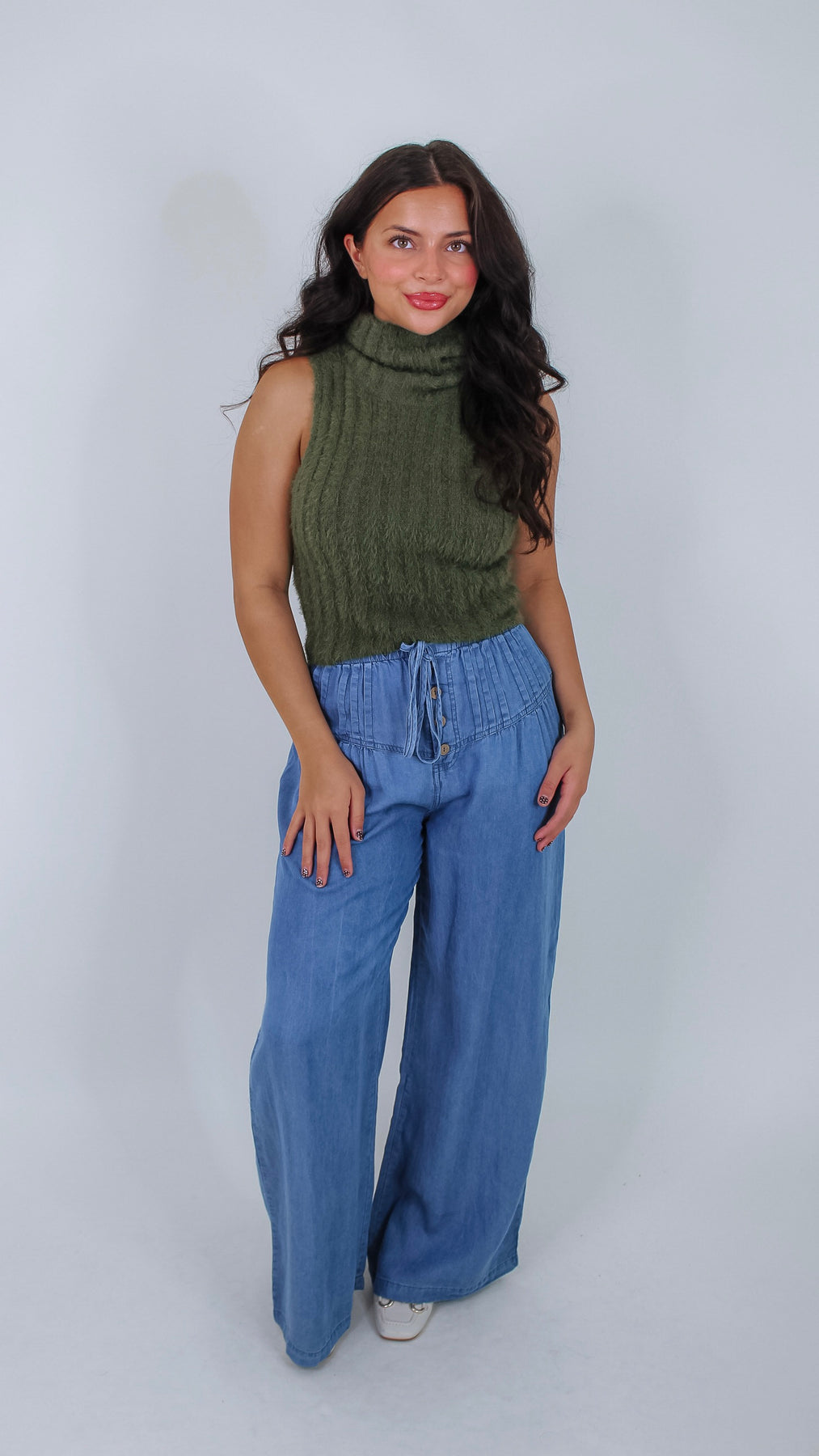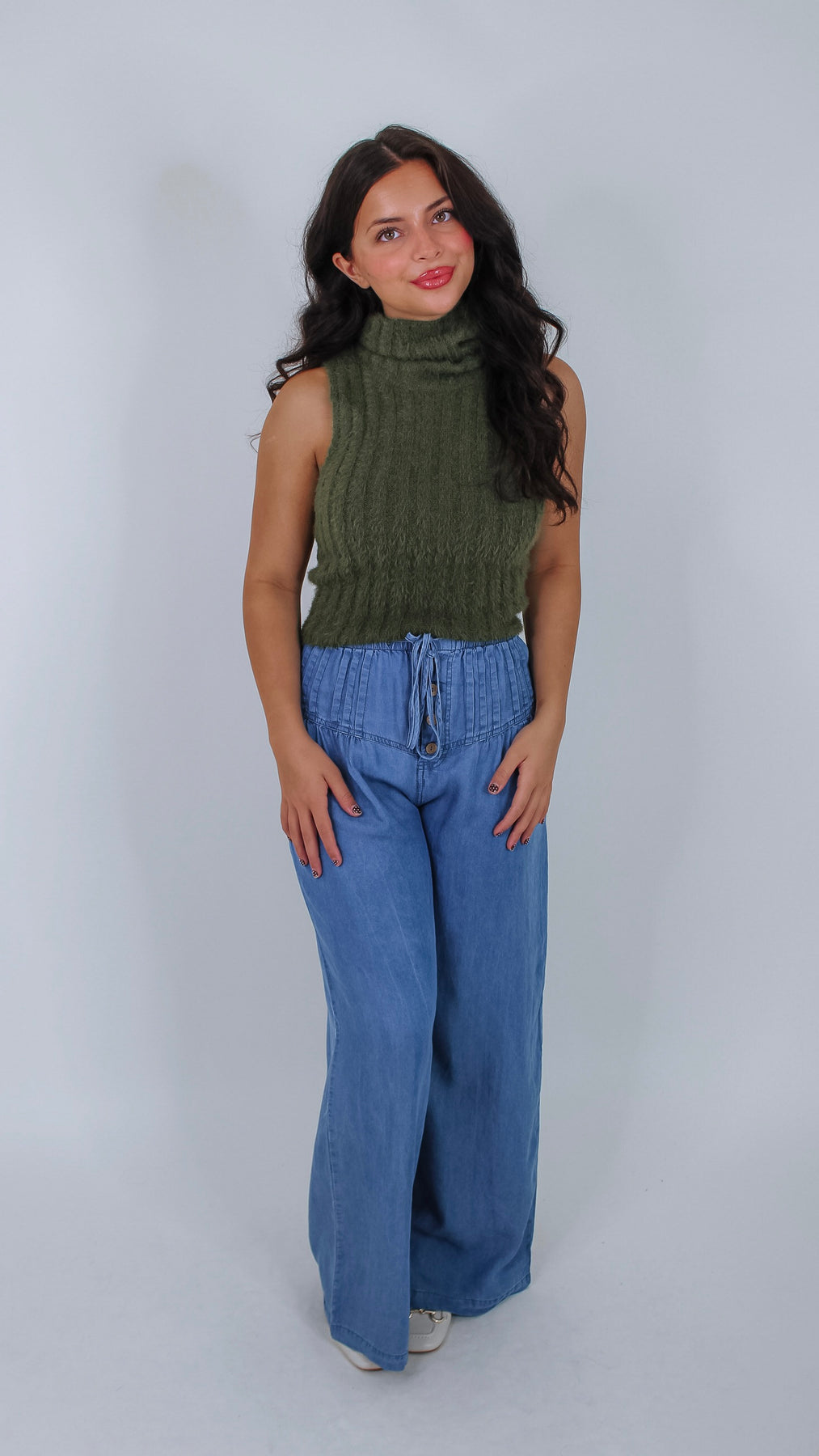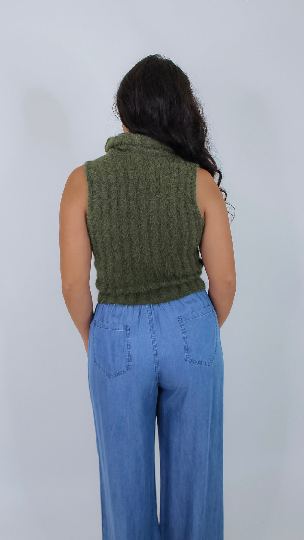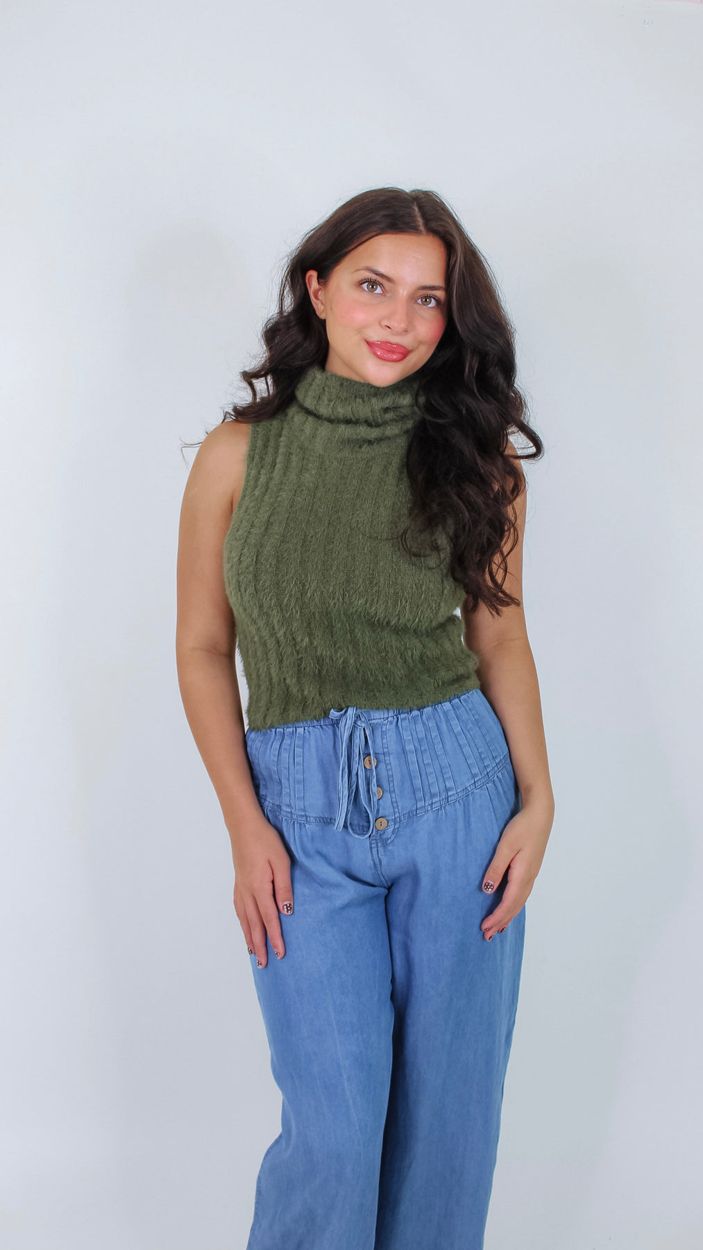 Elevate your layering game with the Valentina Olive Sleeveless Turtleneck. This playful olive green tank combines cozy turtleneck warmth with breezy sleeveless comfort, perfect for mixing and matching all season long. Its sleek silhouette adds a fun twist to any outfit, making it your new go-to for effortless style.