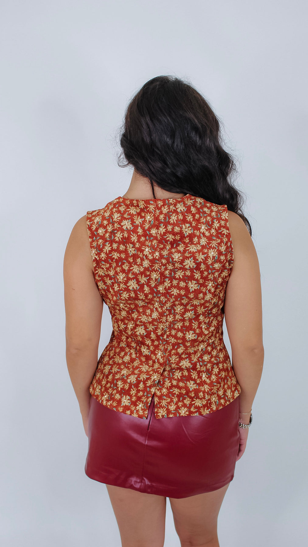 The Zemata Rust Vest is your new go-to top for playful, floral-inspired fun. Its vibrant rust color and charming floral pattern make every outfit pop, while the cozy fit keeps you comfy all day. Perfect for layering or wearing solo!