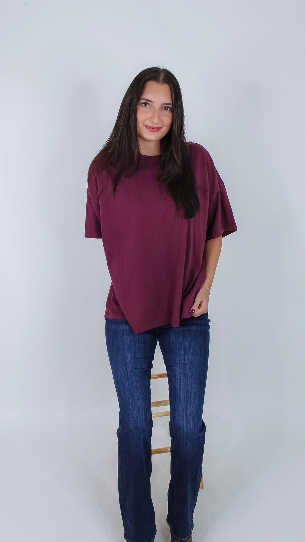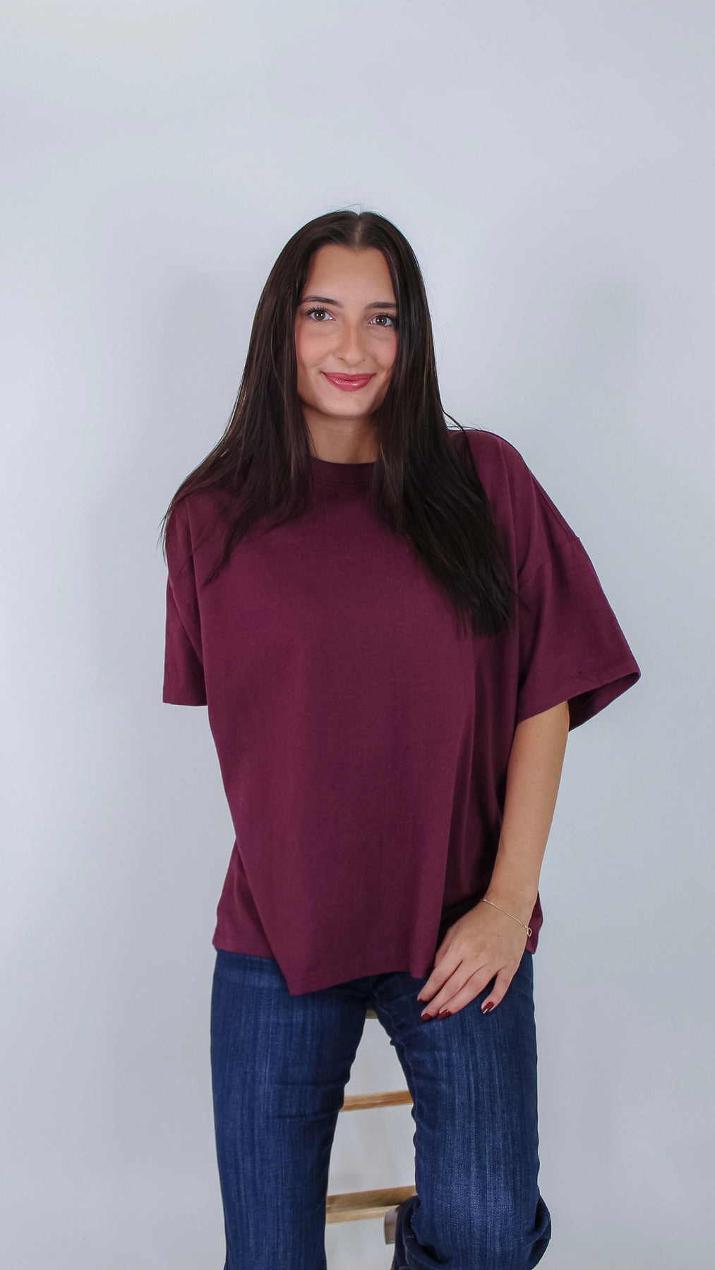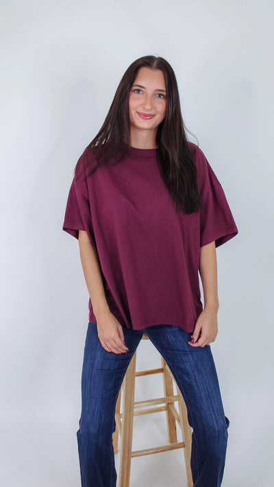 Add a pop of rich, dark cherry color to your everyday wardrobe with the Day By Day Top. This playful t-shirt combines comfort and style, making it perfect for brightening up any casual look. Whether you're out and about or lounging at home, its vibrant hue and soft fabric keep you feeling fresh all day long.