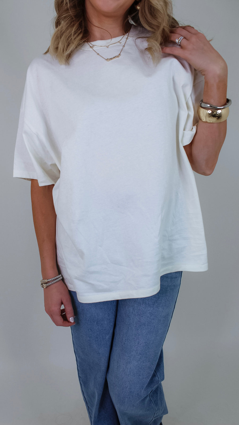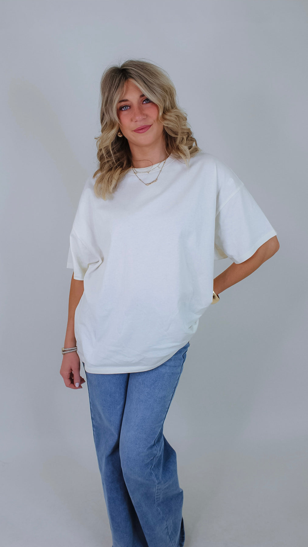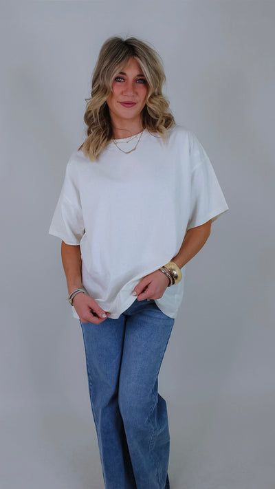Slip into the Day By Day Top in cream — your new go-to for effortless style. Soft, cozy, and perfectly casual, this tee brightens any outfit while keeping comfort front and center. Pair it with jeans or your favorite skirt!